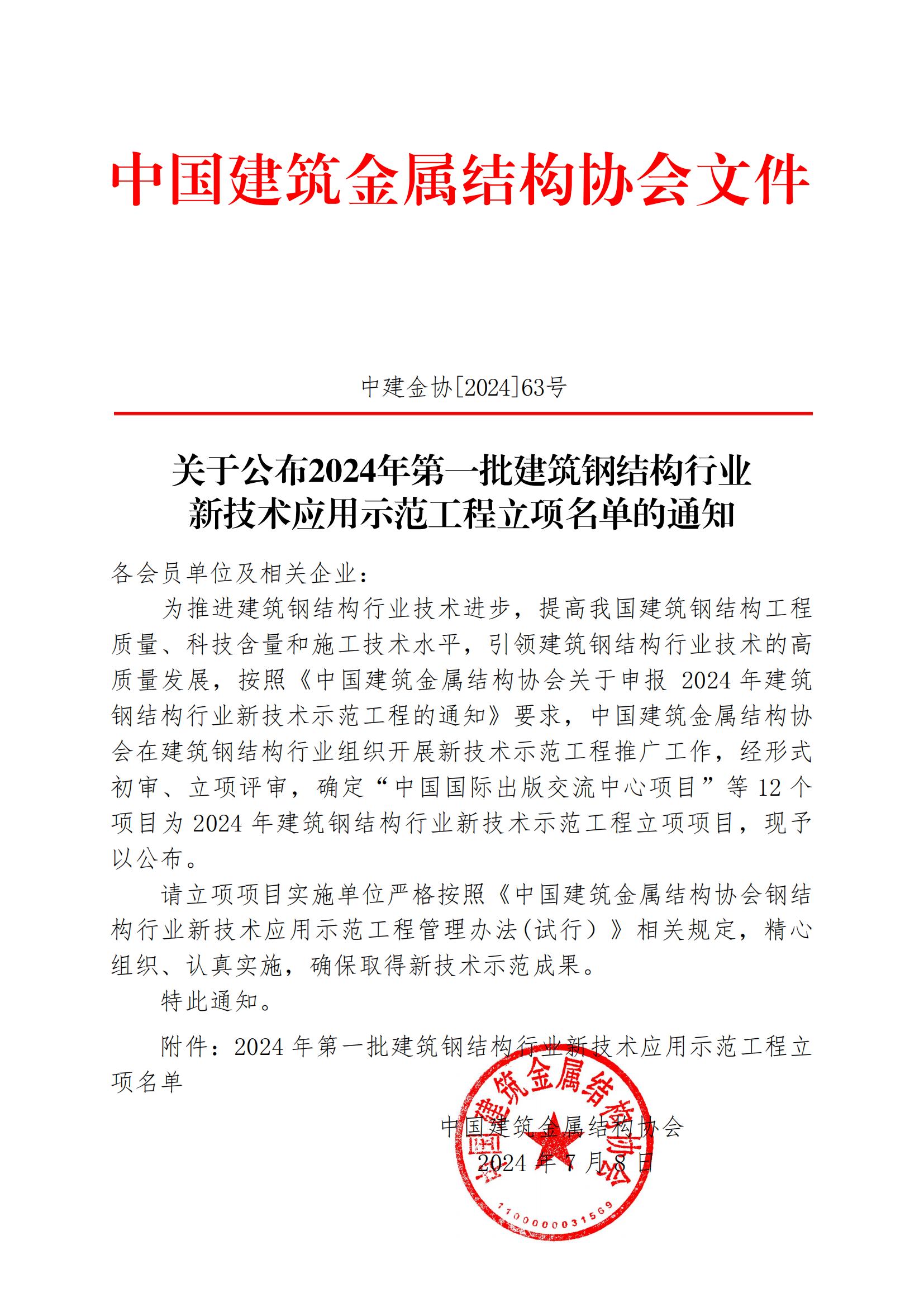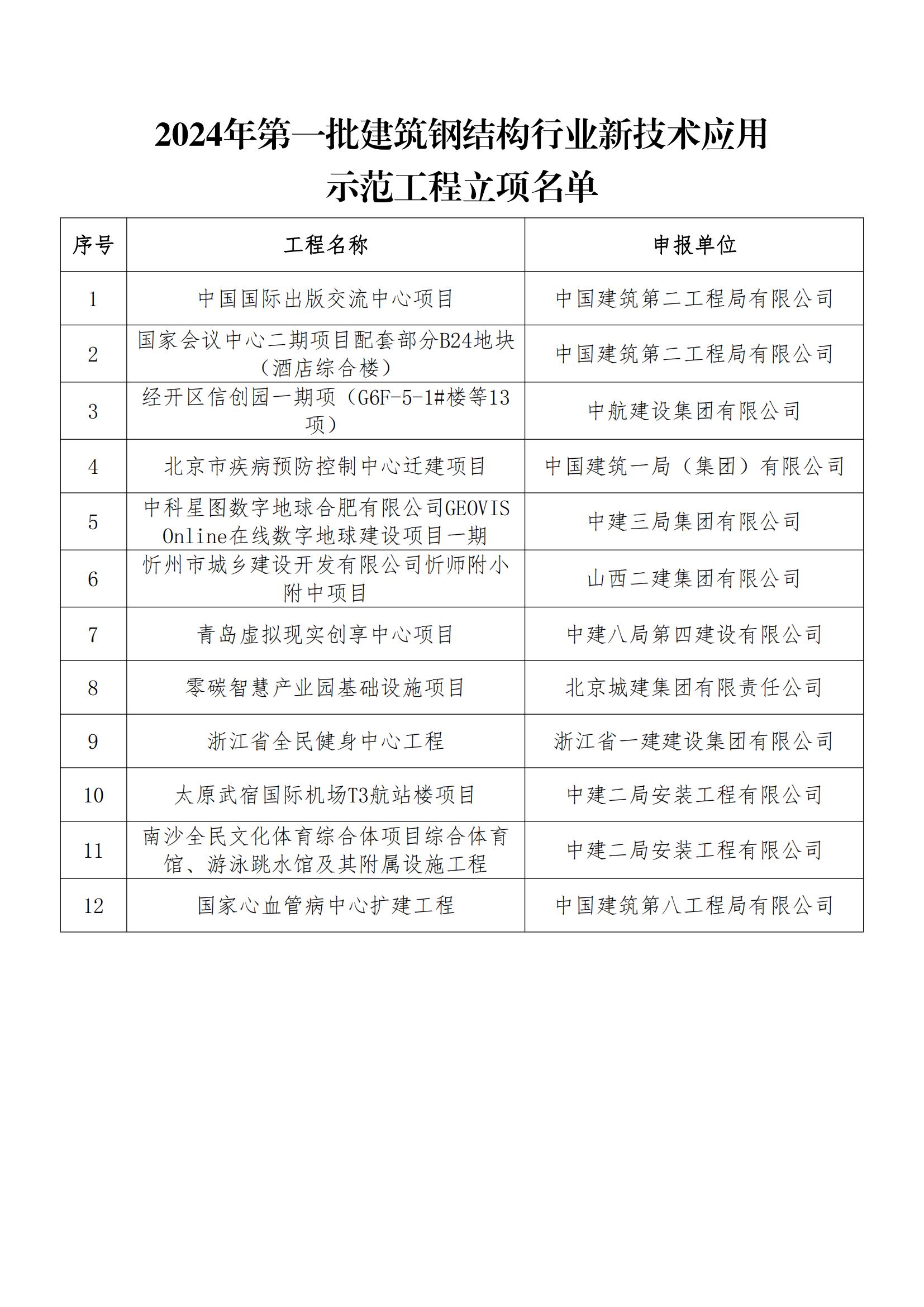 关于公布2024年第一批建筑钢结构行业新技术应用示范工程立项名单的通知