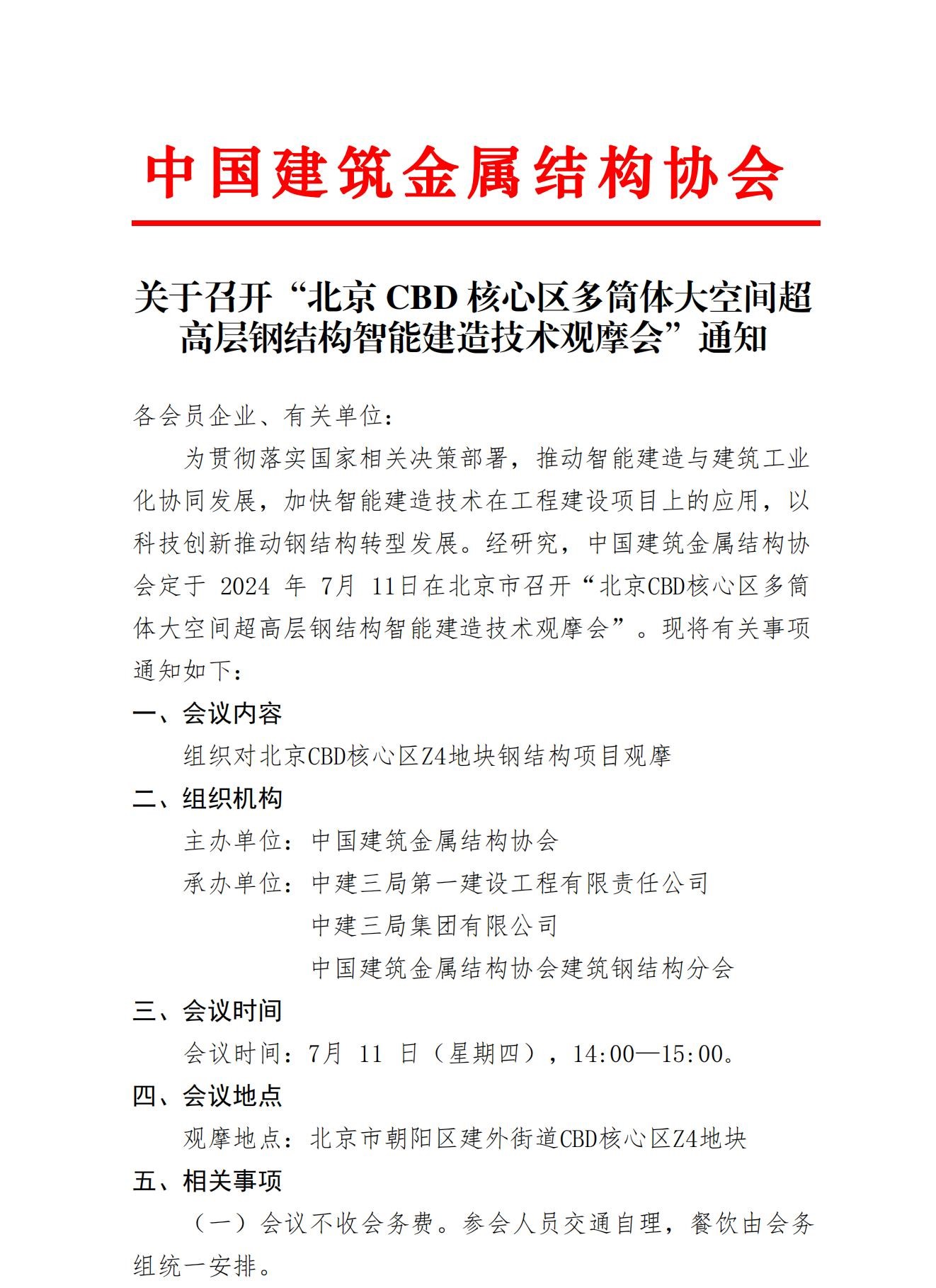 关于召开“北京 CBD 核心区多筒体大空间超高层钢结构智能建造技术观摩会”通知