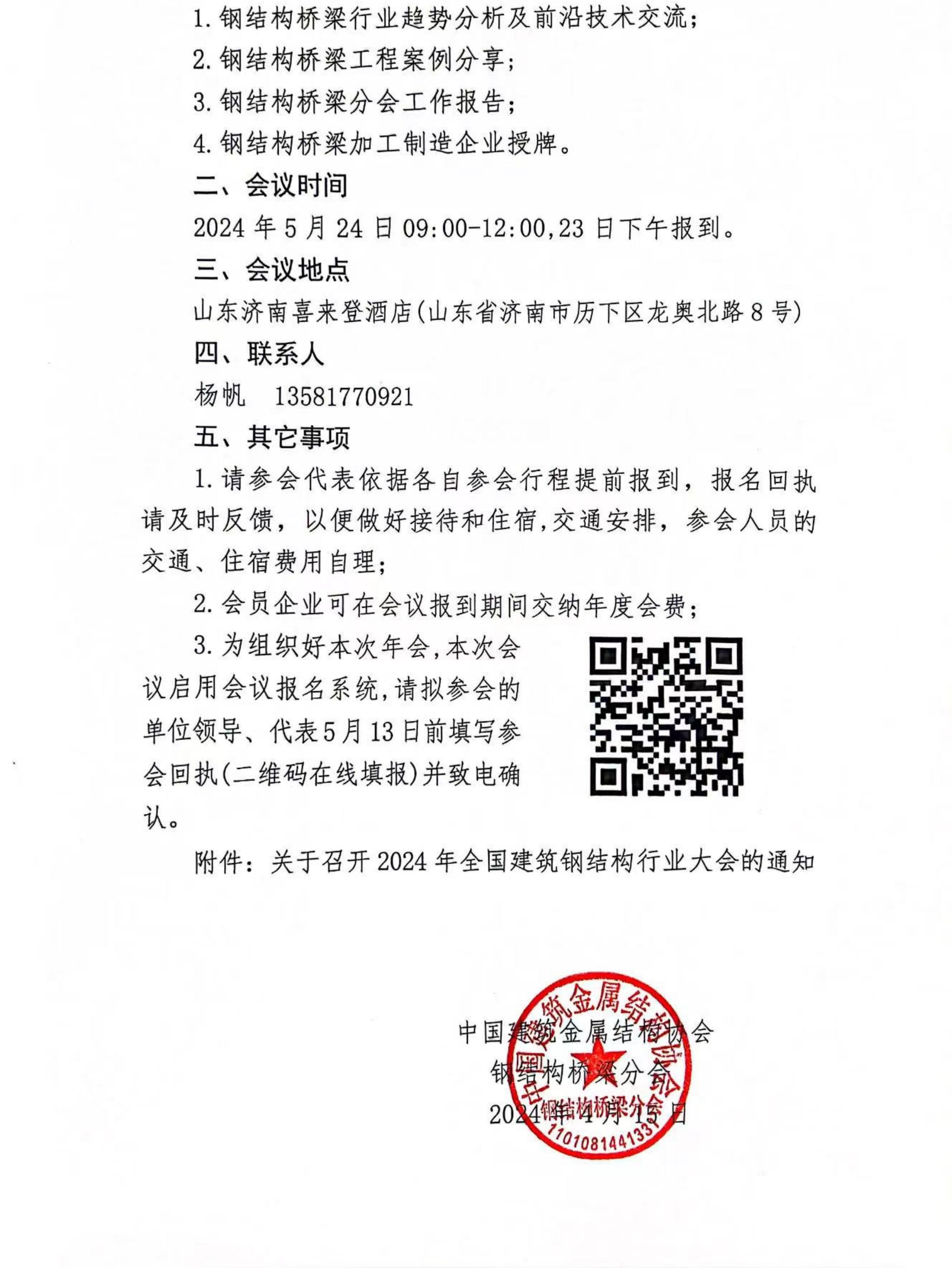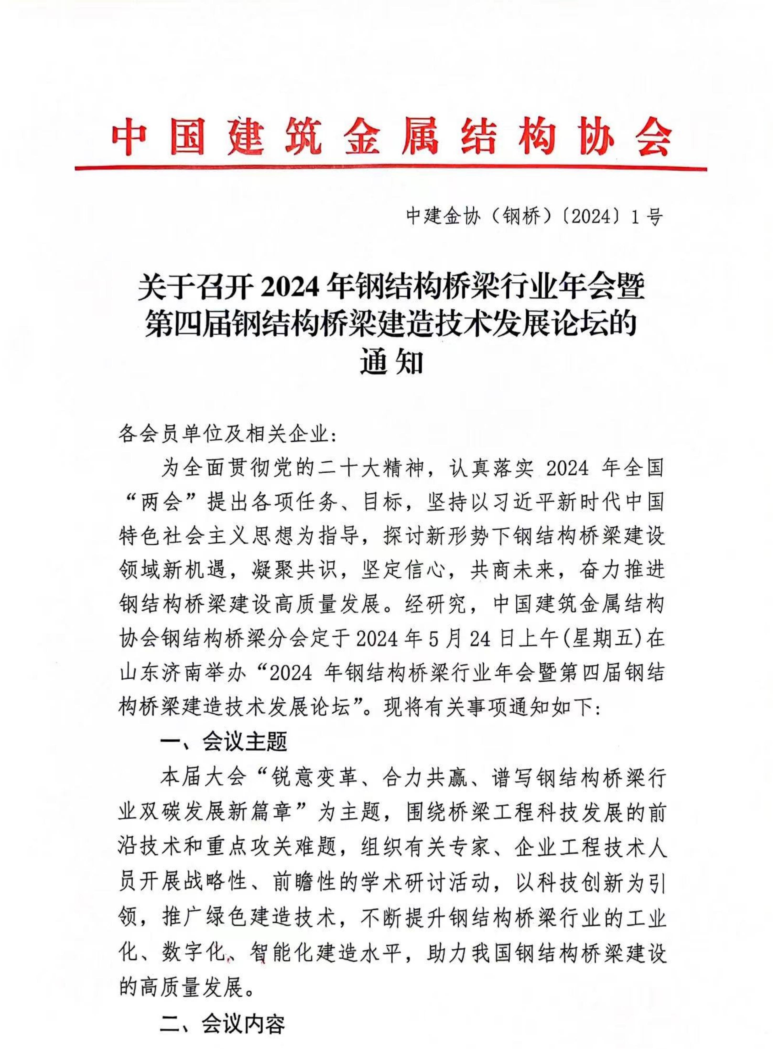 关于召开2024年钢结构桥梁行业年会暨第四届钢结构桥梁建造技术发展论坛的通知