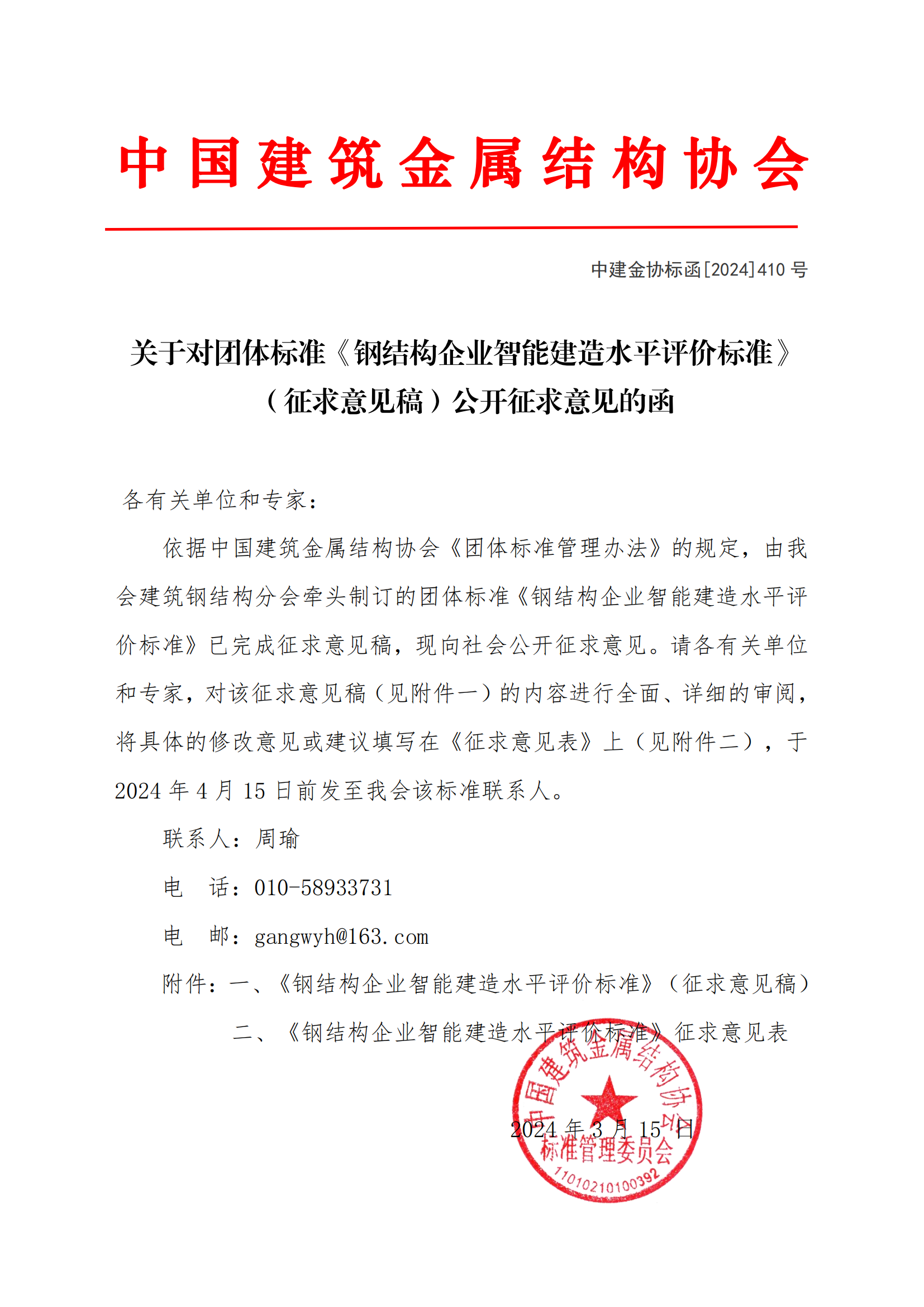 关于《钢结构企业智能建造水平评价标准》公开征求意见的通知