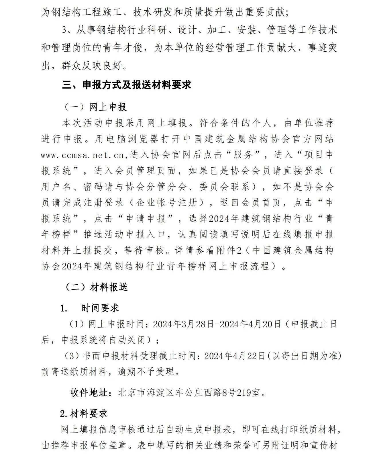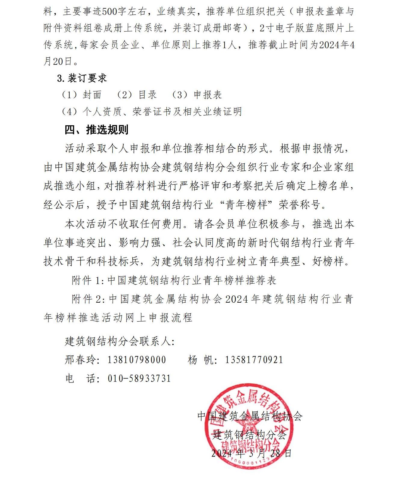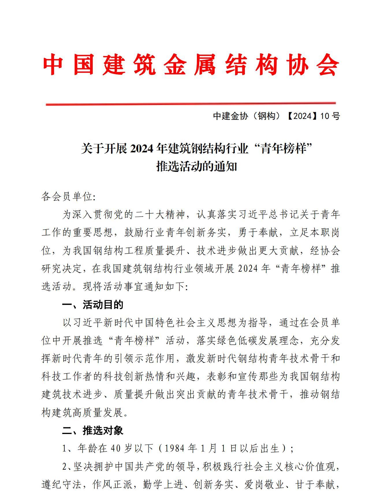 关于开展2024年建筑钢结构行业青年榜样推选活动的通知