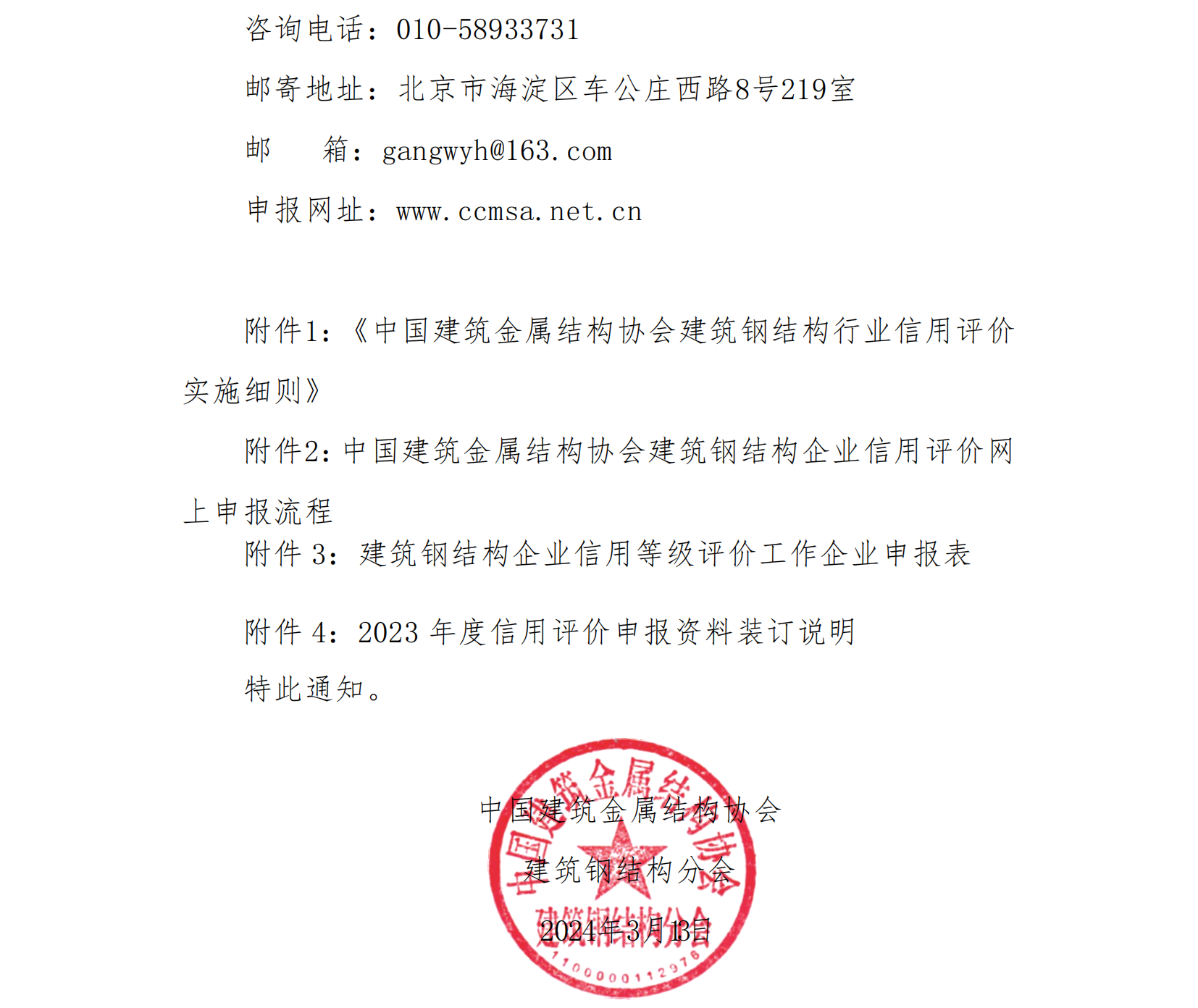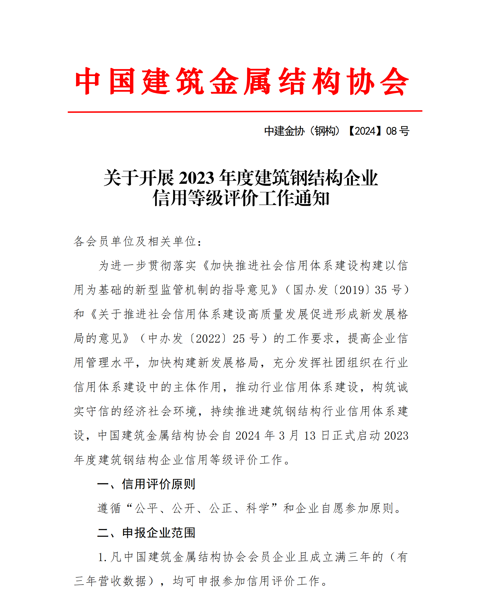 关于开展2023年度建筑钢结构企业信用等级评价工作通知