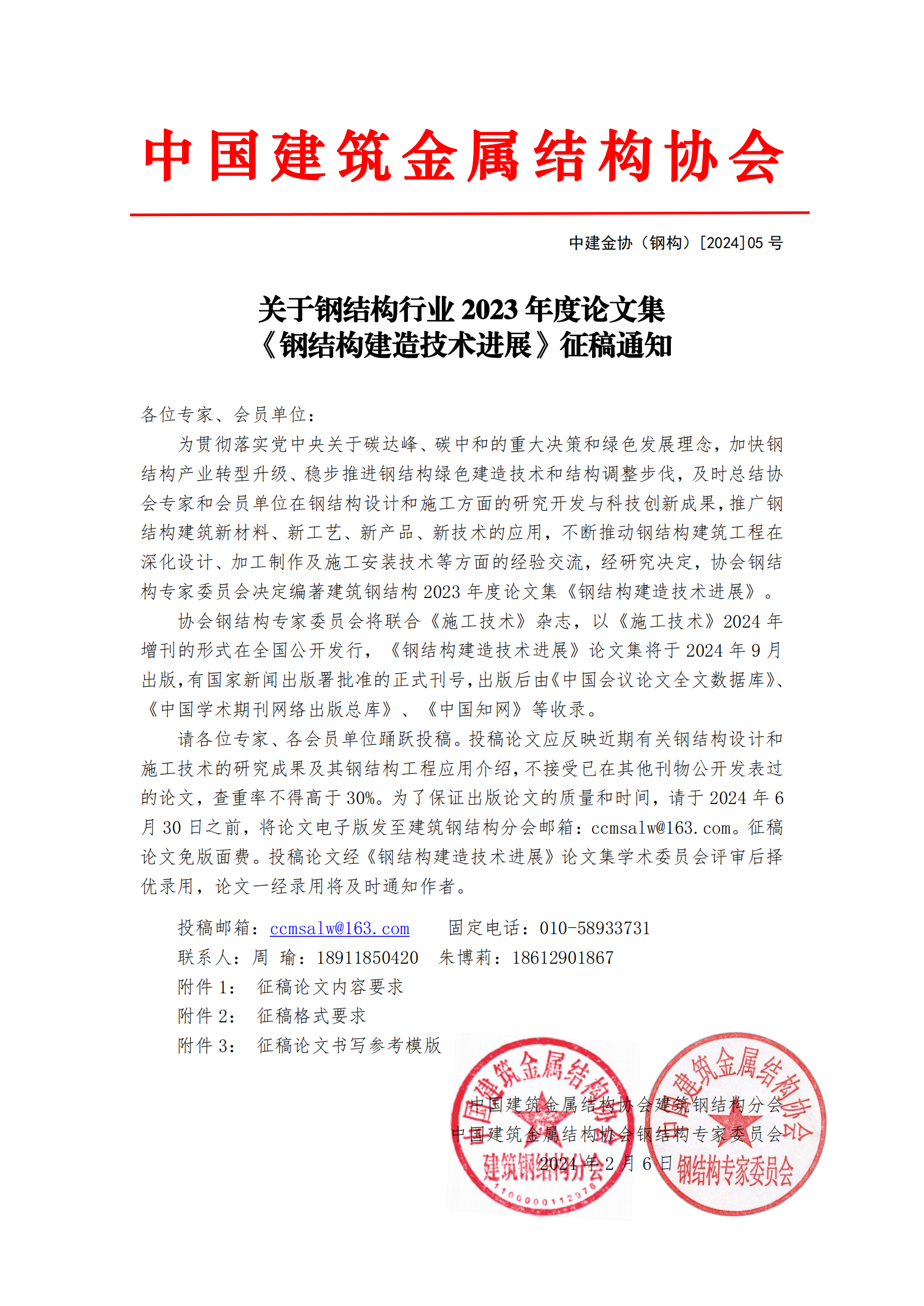 关于钢结构行业2023年度论文集 《钢结构建造技术进展》征稿通知