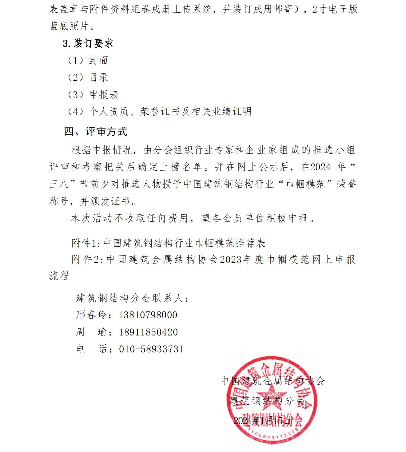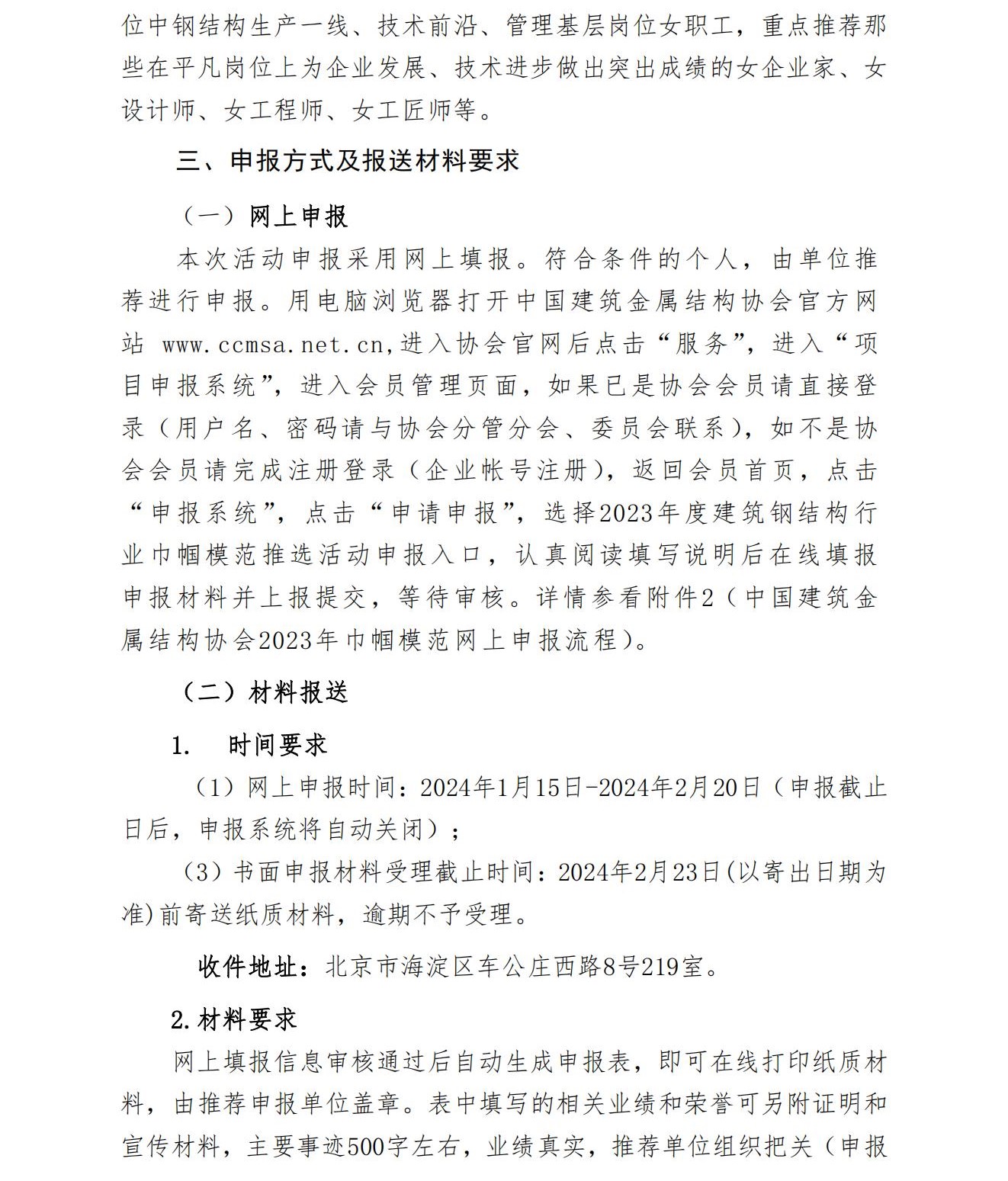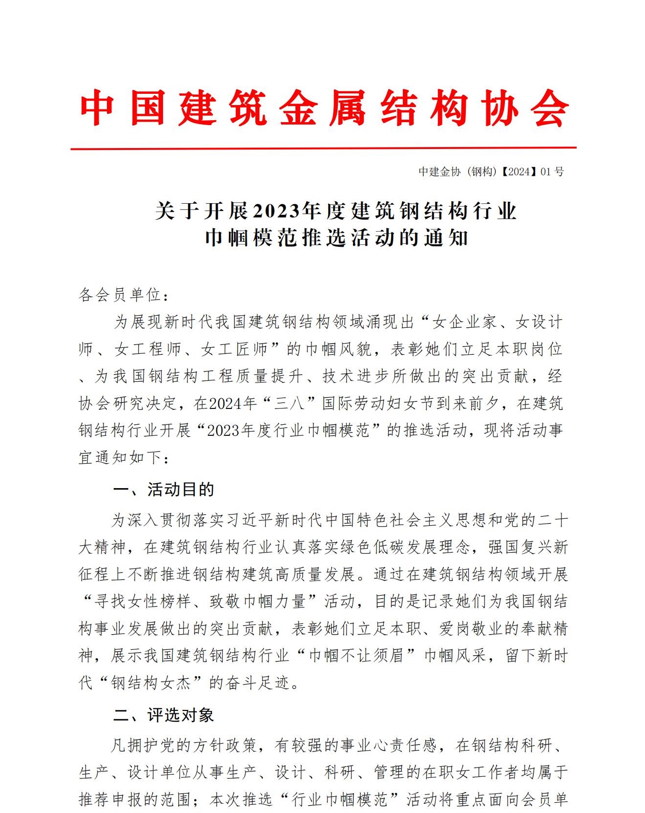 关于开展2023年度建筑钢结构行业巾帼模范推选活动的通知