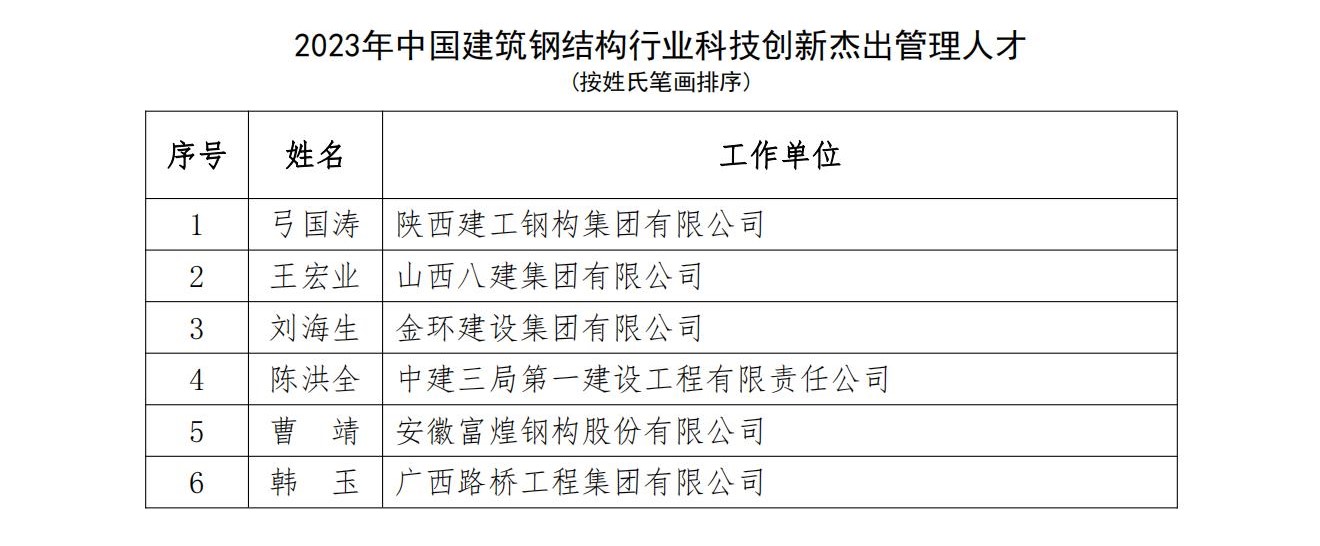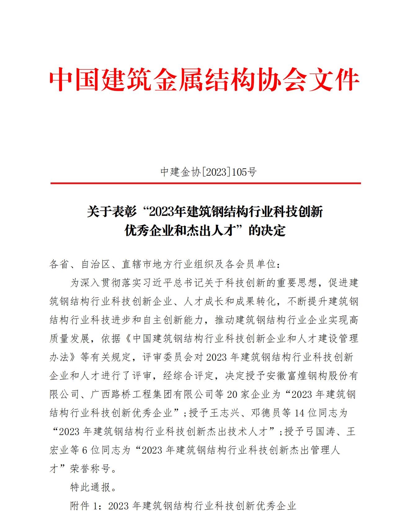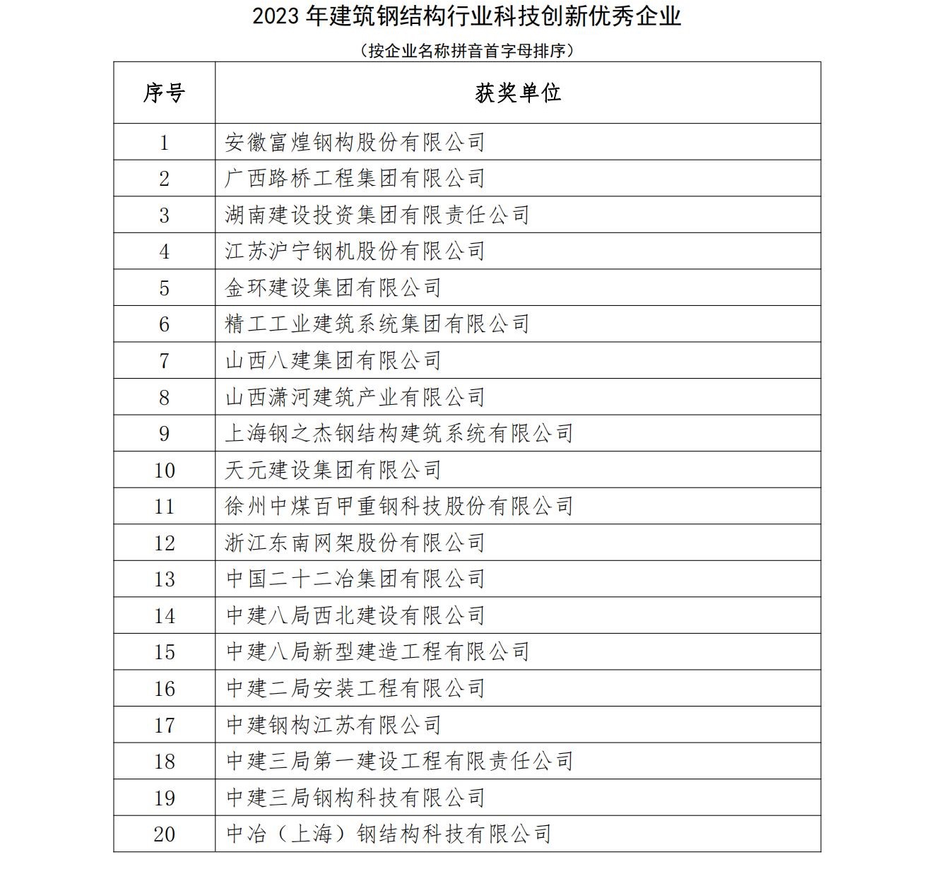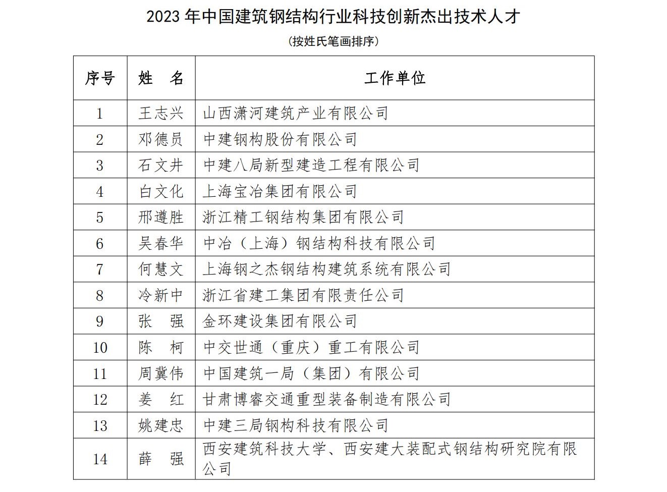 关于表彰“2023年建筑钢结构行业科技创新优秀企业和杰出人才”的决定(内附名单)