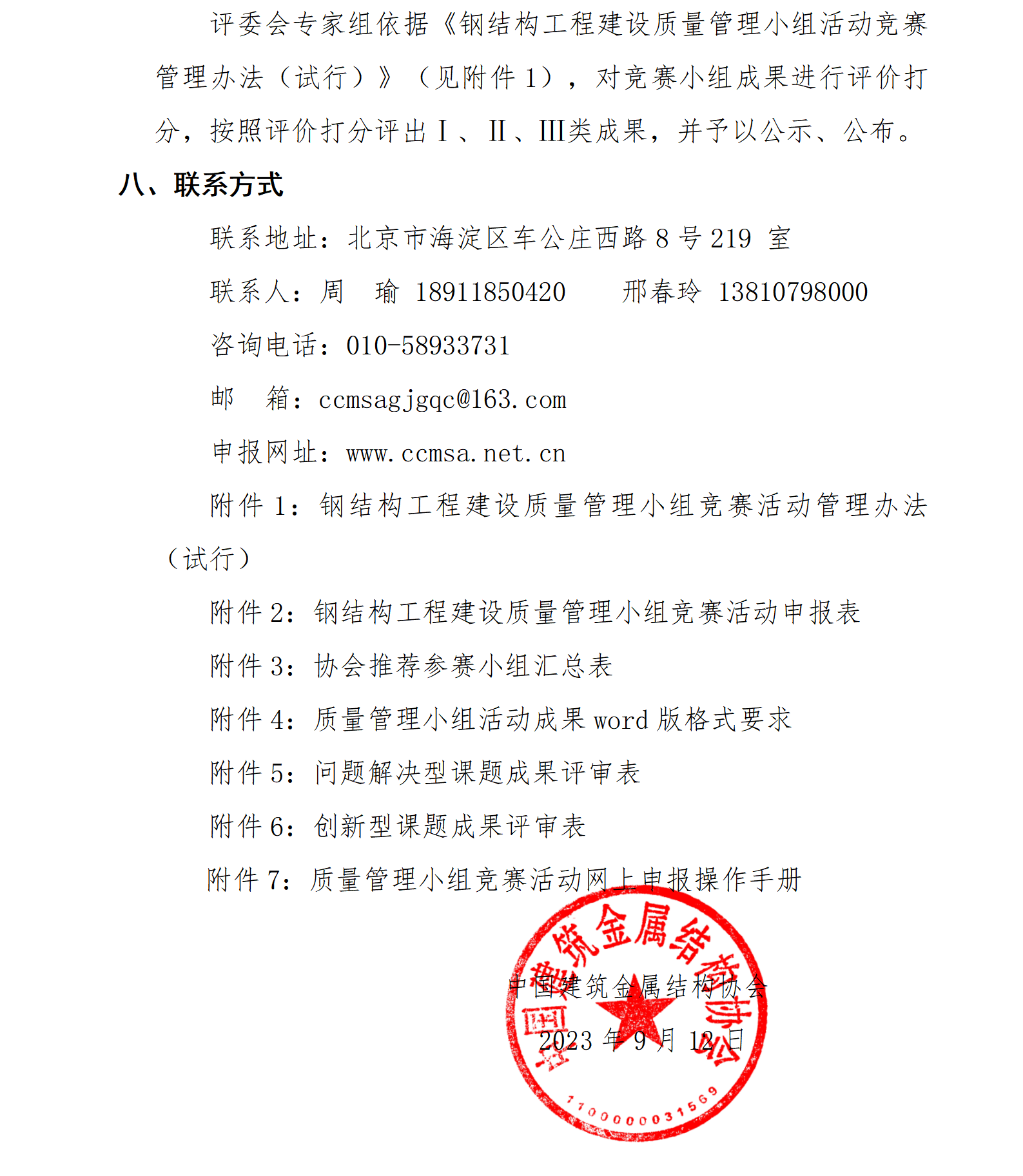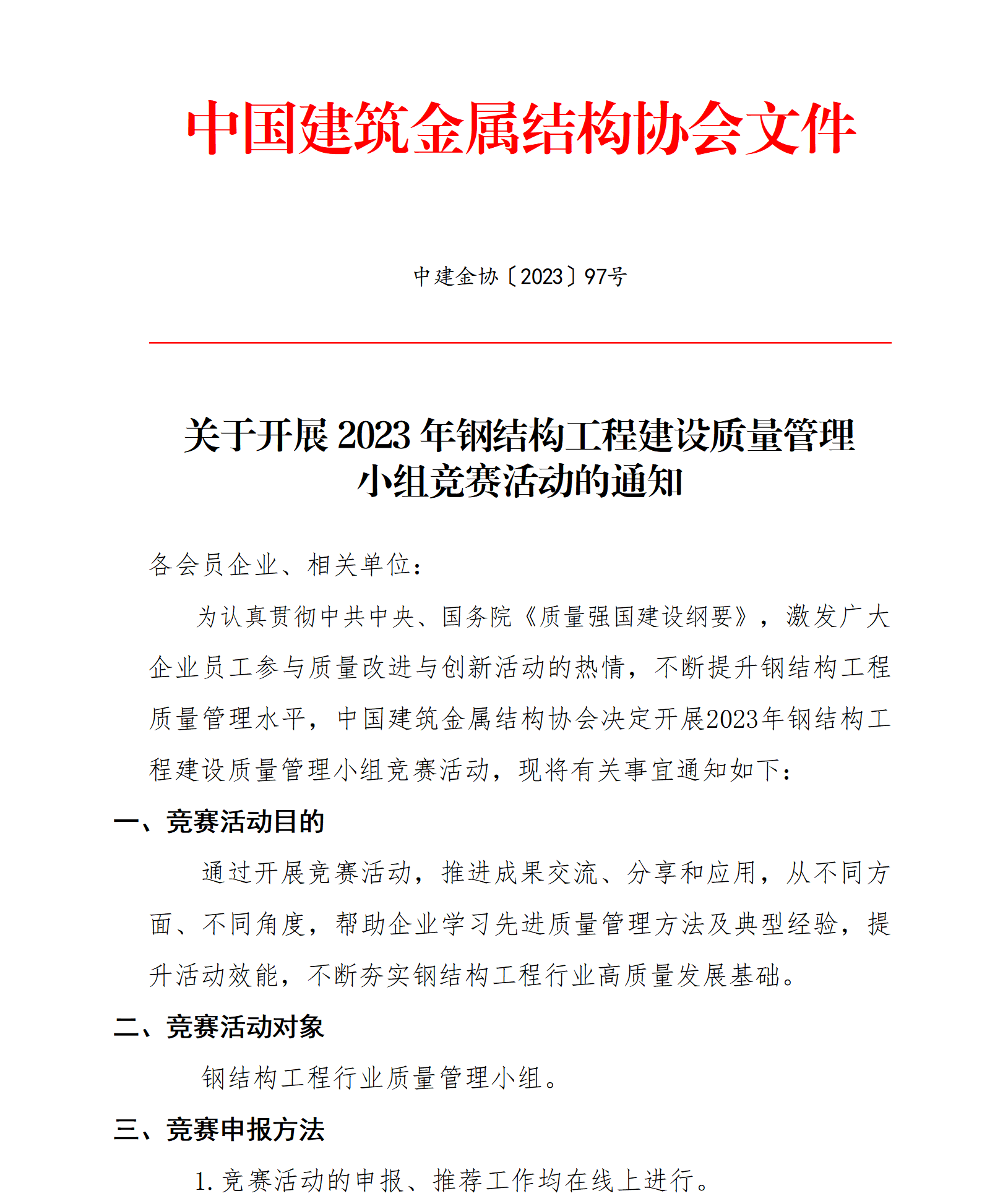关于开展2023年钢结构工程建设质量管理小组竞赛活动的通知