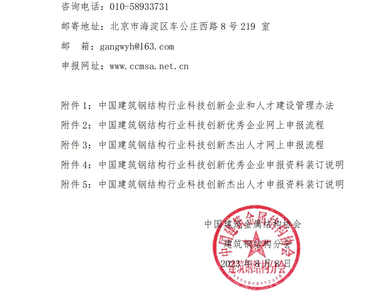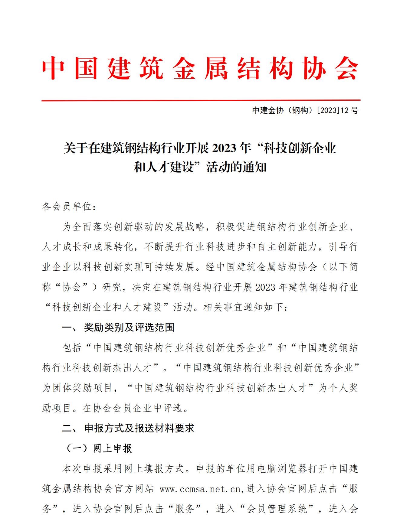关于在建筑钢结构行业开展2023年中国建筑钢结构行业科技创新企业和人才建设活动的通知