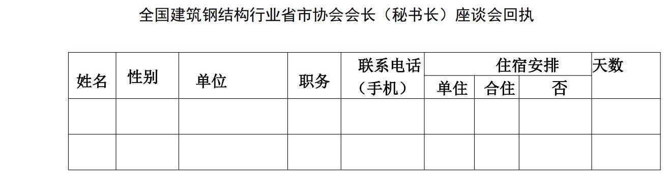 附件2:关于召开全国建筑钢结构行业省市协会会长(秘书长)座谈会参会回执