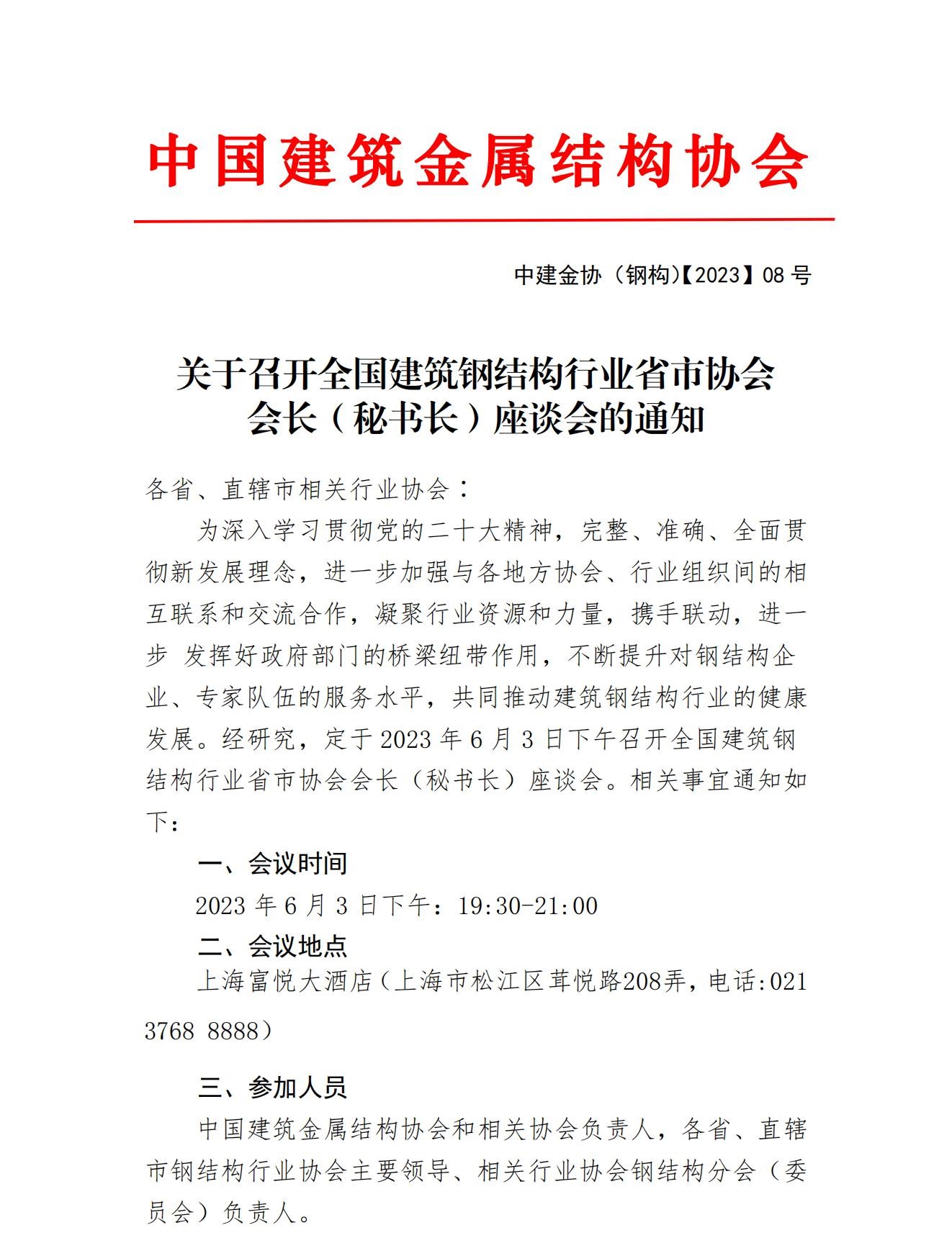 关于召开全国建筑钢结构行业省市协会 会长(秘书长)座谈会的通知