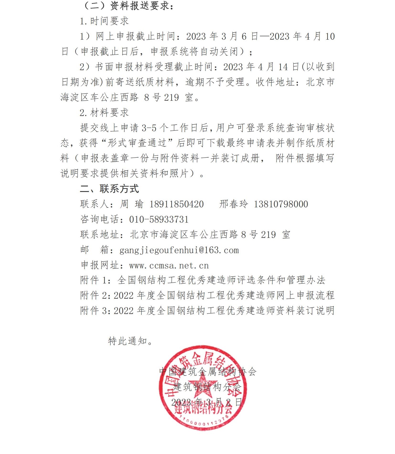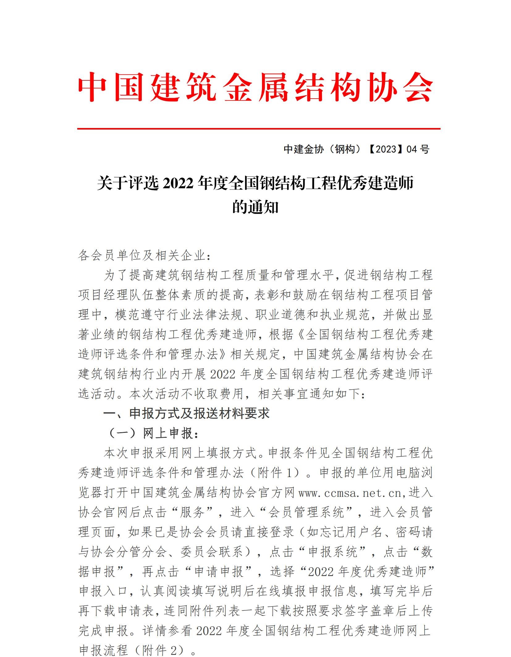 关于评选2022年度全国钢结构工程优秀建造师的通知