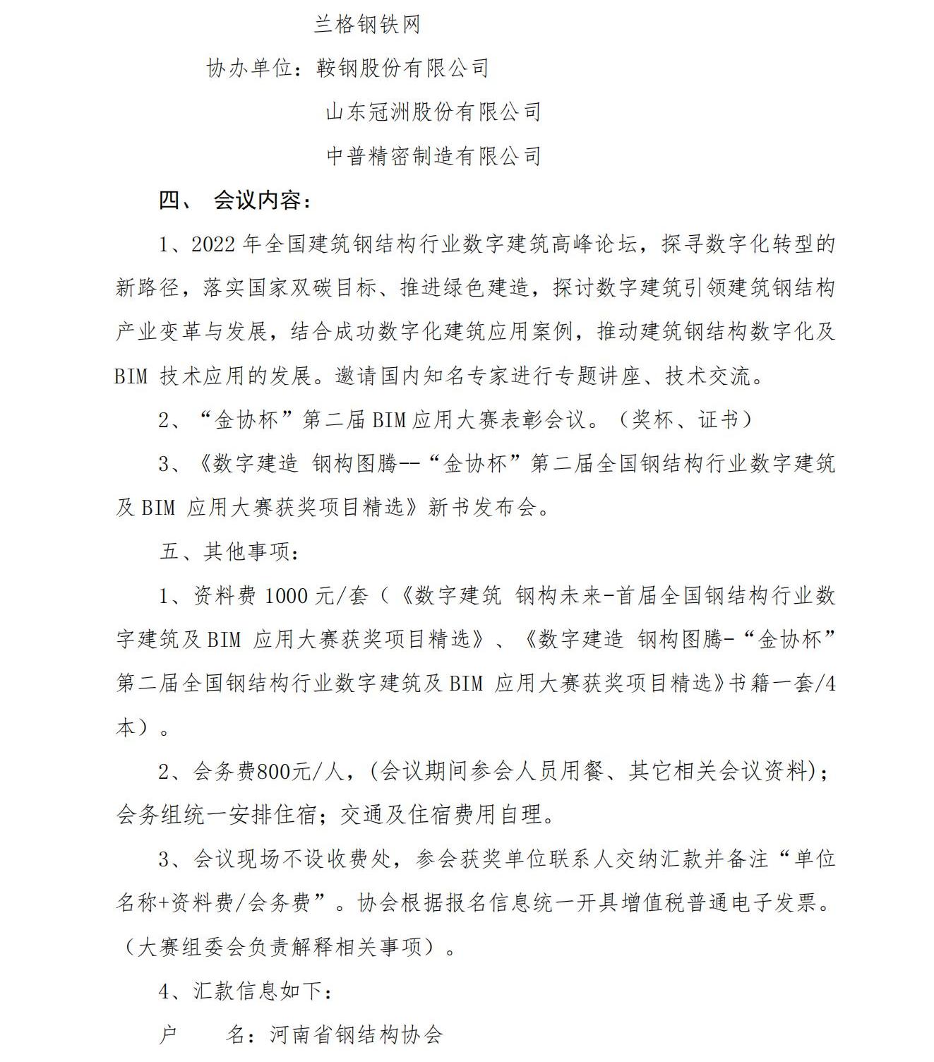 2022年“金协杯”第二届全国钢结构行业数字建筑论坛暨BIM应用大赛表彰会议通知(三号通知)
