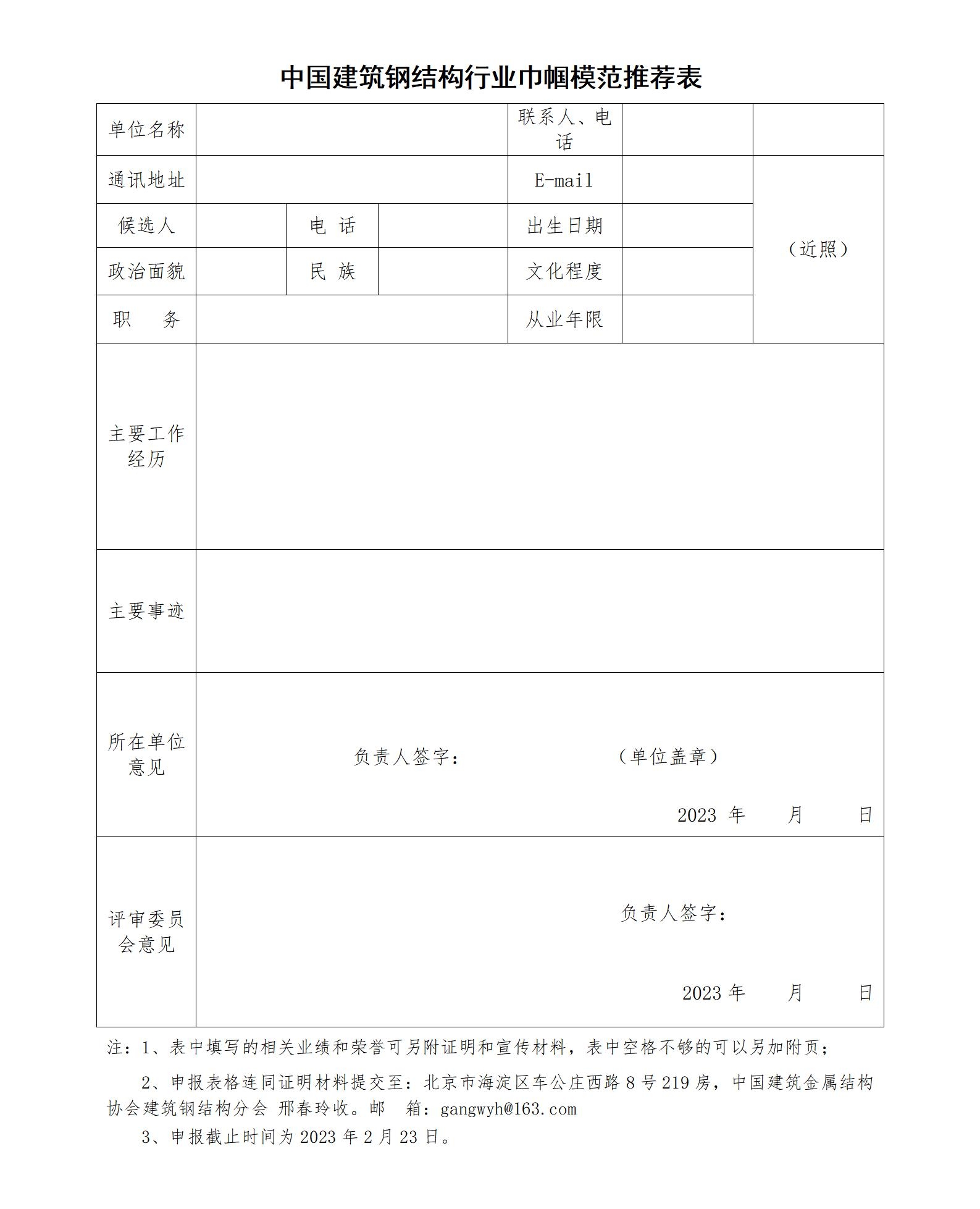附件:中国建筑钢结构行业巾帼模范推荐表