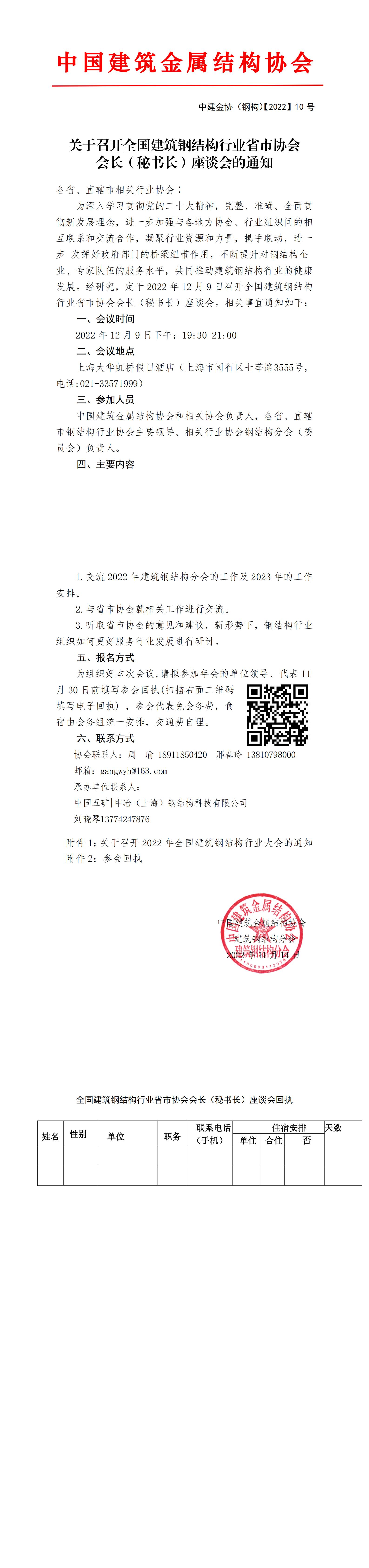 关于召开全国建筑钢结构行业省市协会 会长(秘书长)座谈会的通知