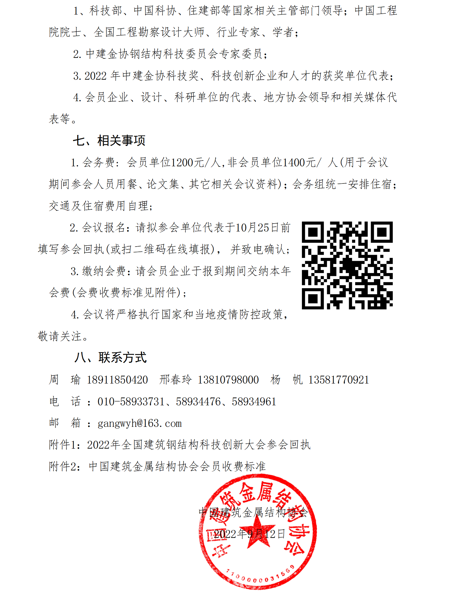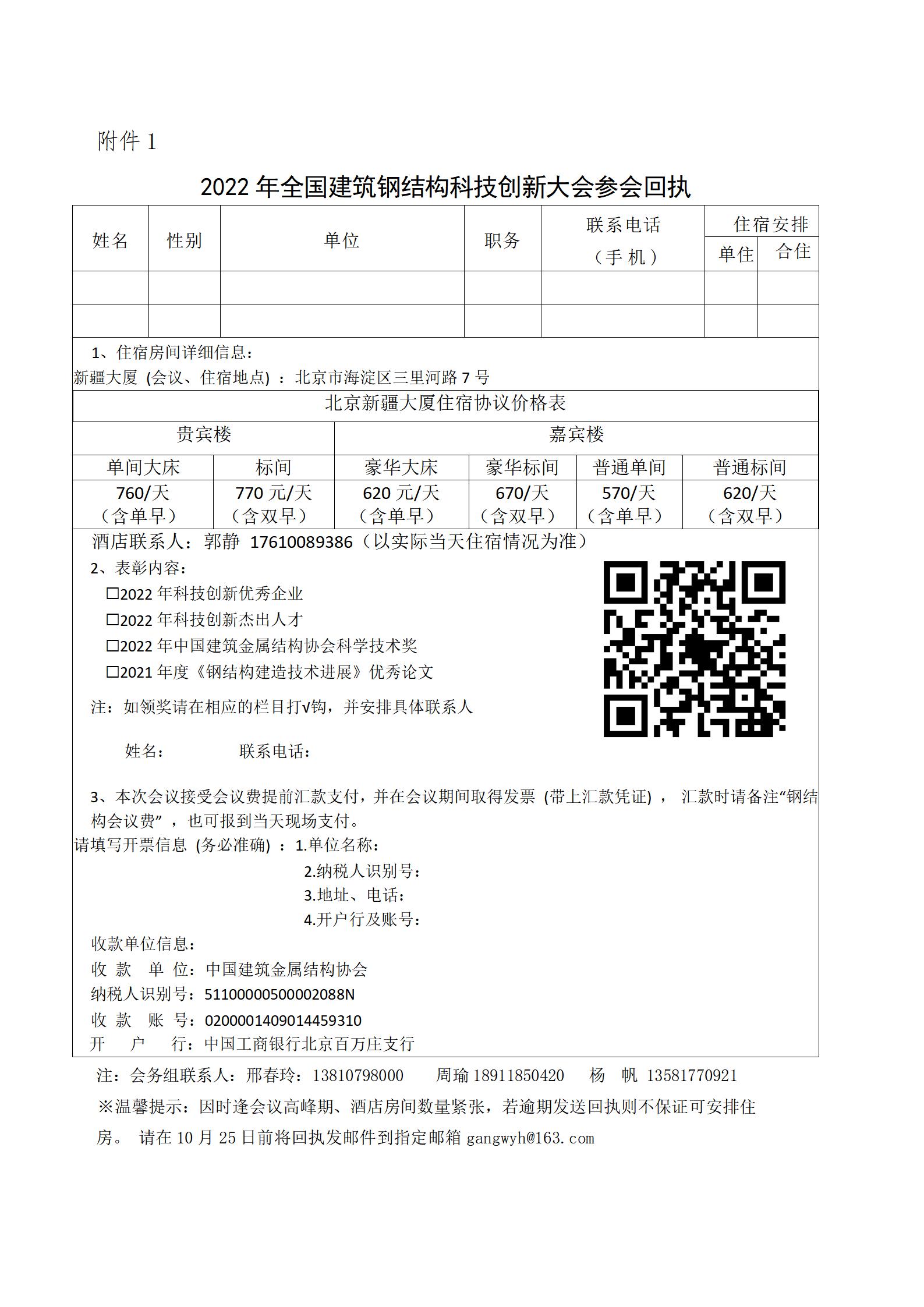 附件:2022年全国建筑钢结构科技创新大会参会回执附件:2022年全国建筑钢结构科技创新大会参会回执