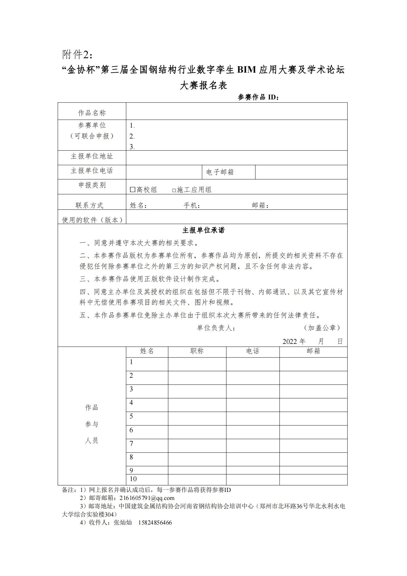 附件:“金协杯”第三届全国钢结构行业数字孪生BIM应用大赛及学术论坛大赛报名表