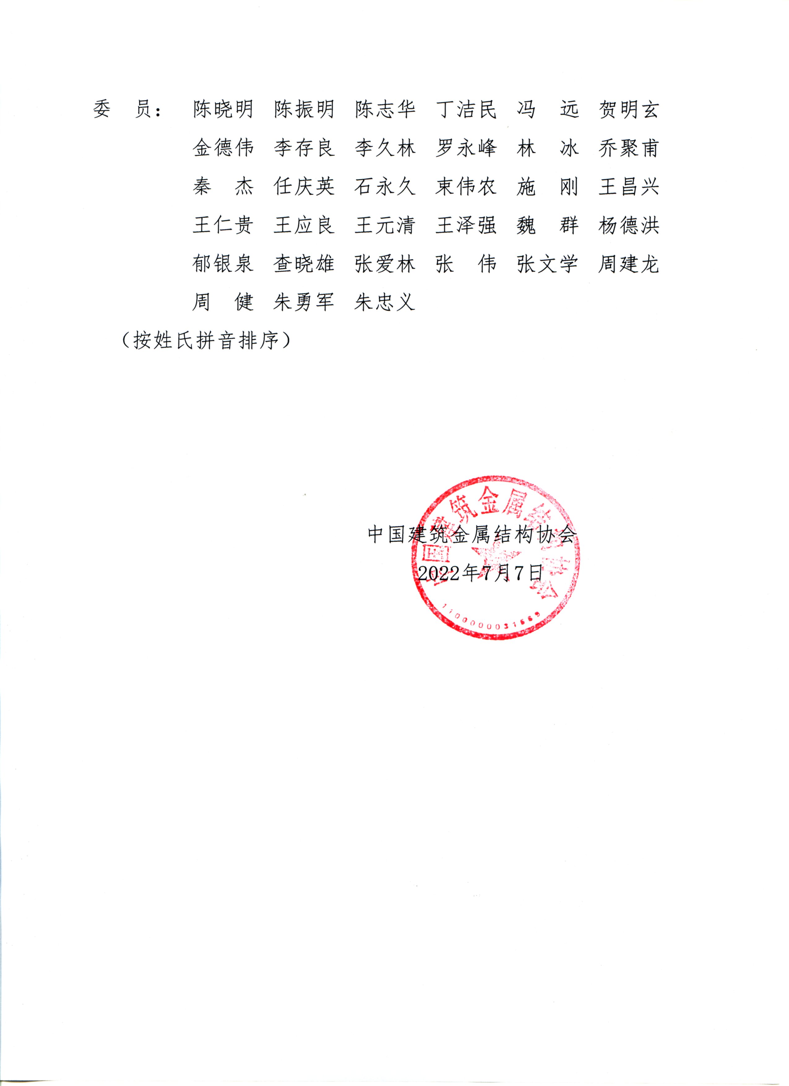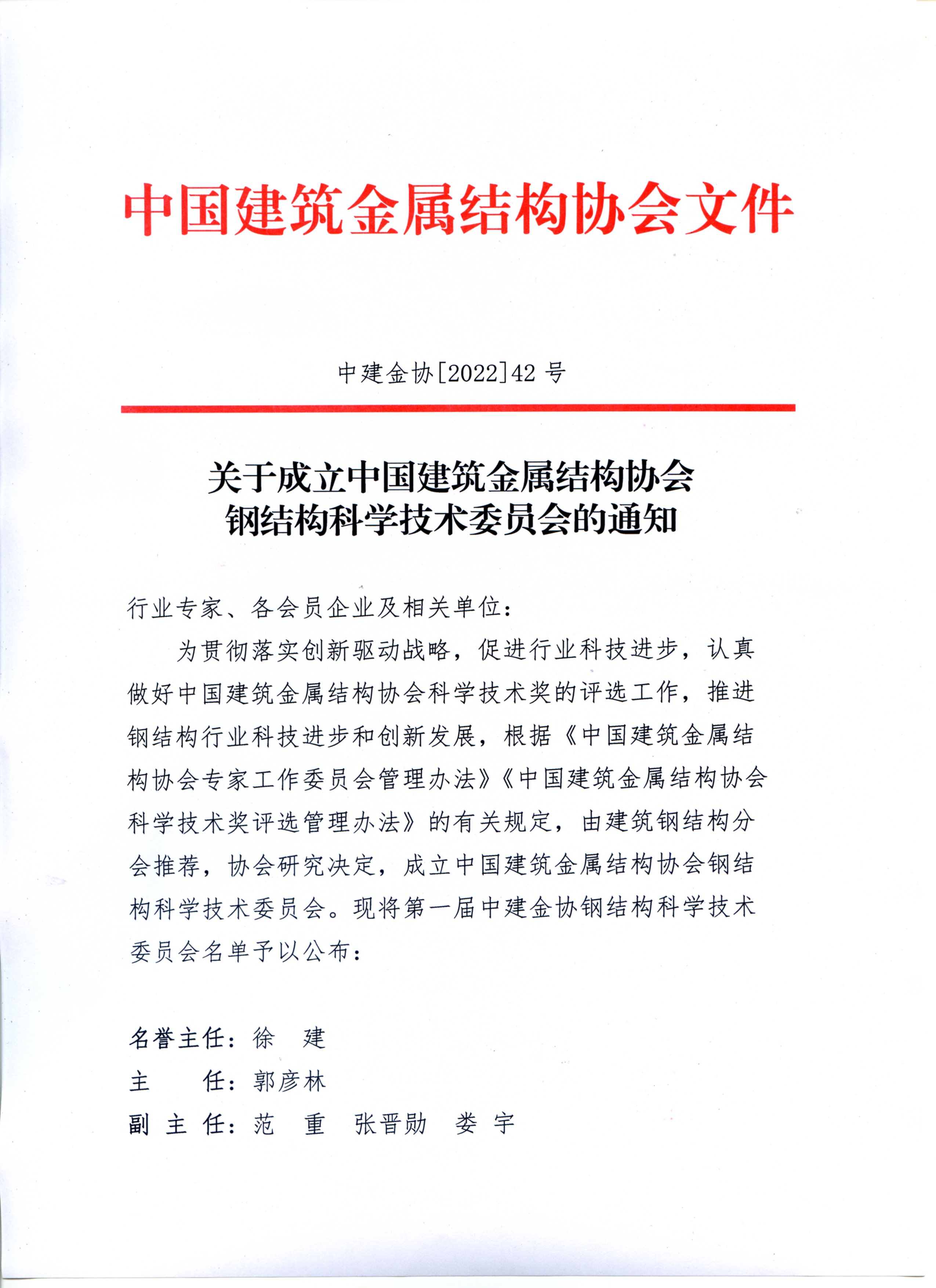 关于成立中国建筑金属结构协会钢结构科学技术委员会的通知