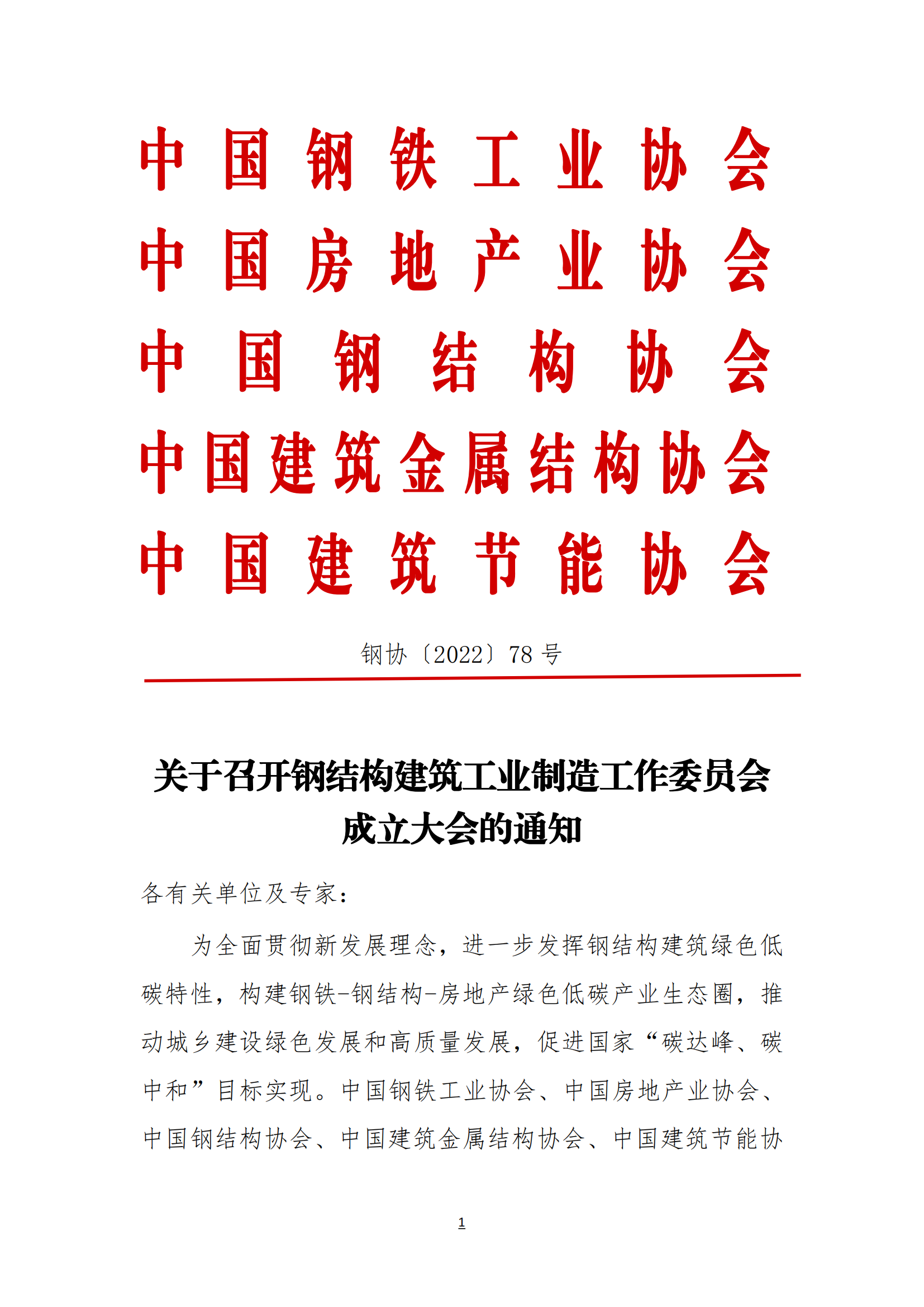 关于召开钢结构建筑工业制造工作委员会 成立大会的通知