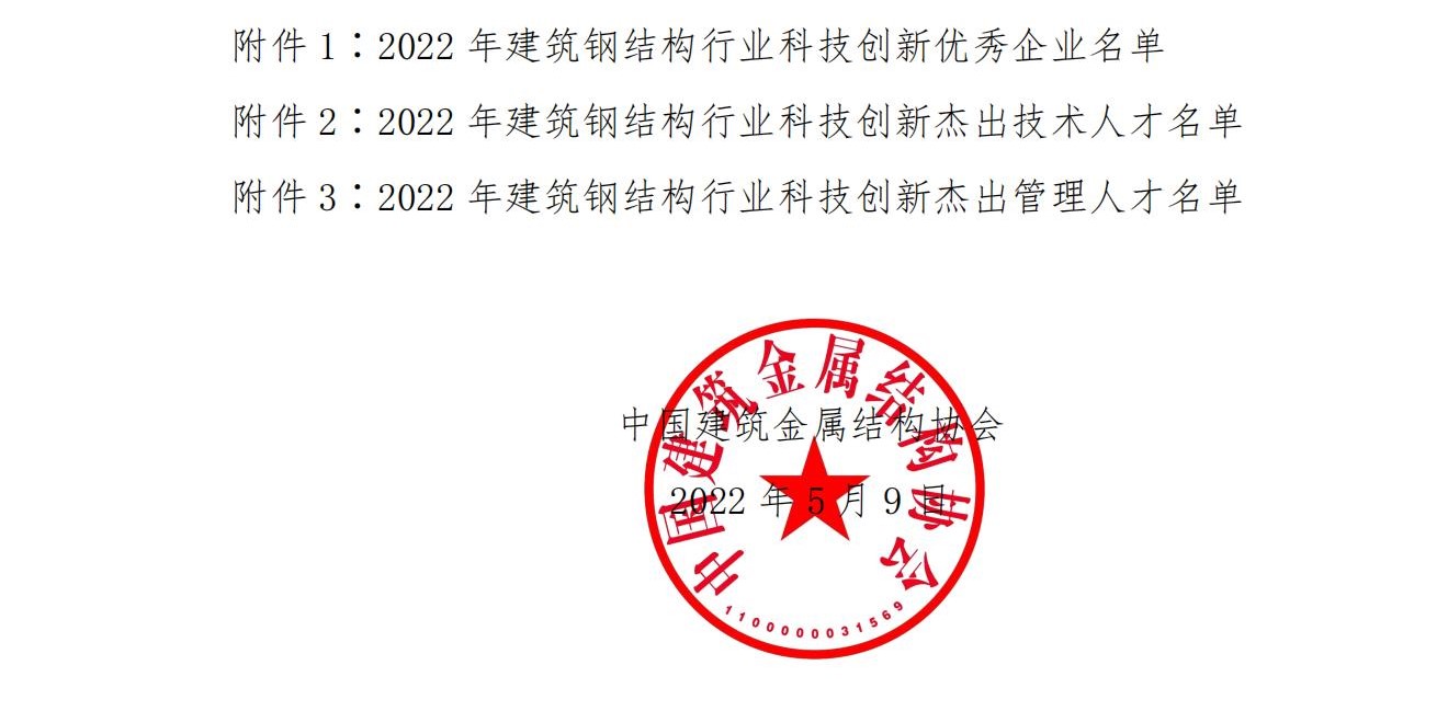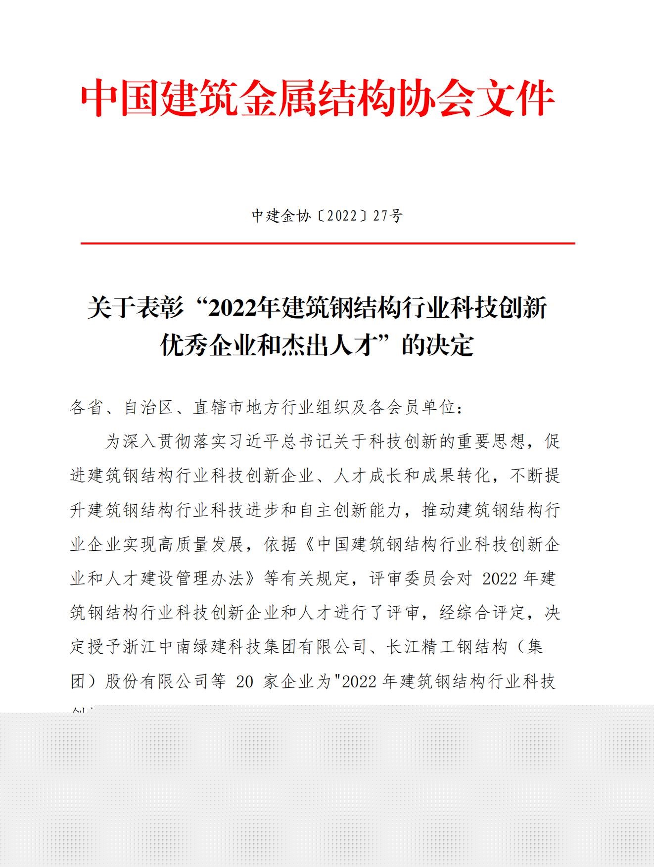 关于表彰“2022年建筑钢结构行业科技创新企业和杰出人才”的决定