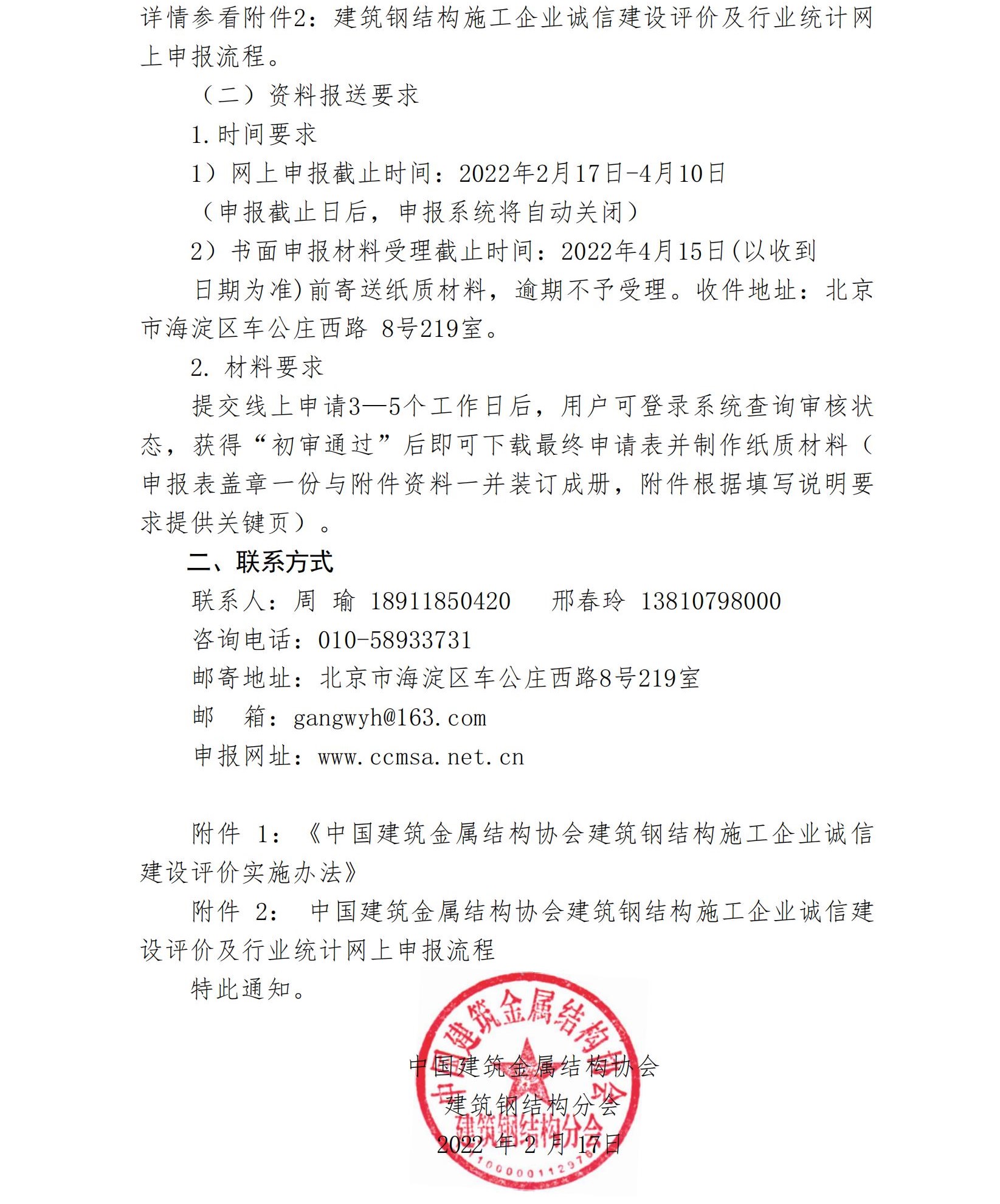 附件1:中国建筑金属结构协会建筑钢结构施工企业诚信建设评价实施办法