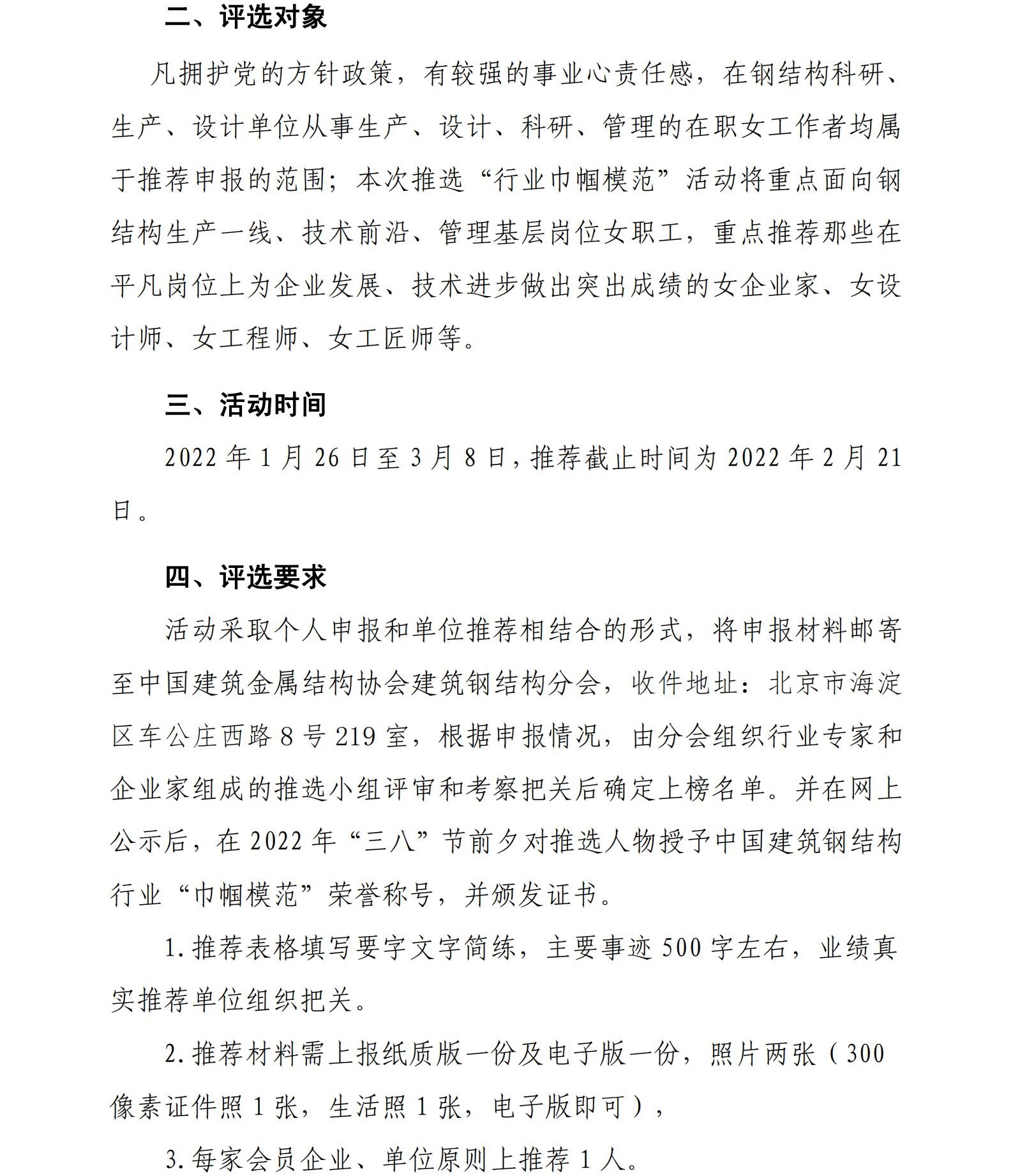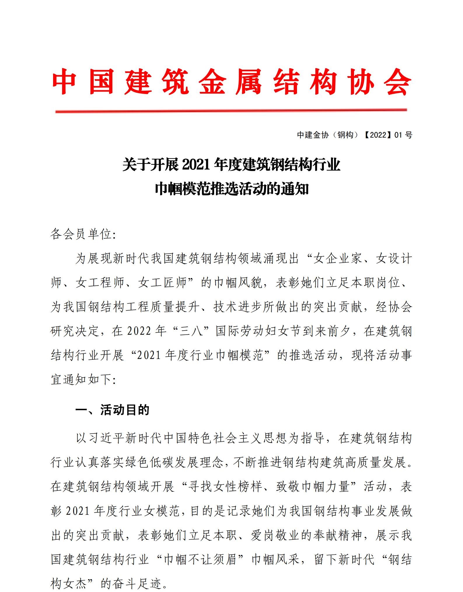 关于开展2021年度建筑钢结构行业巾帼模范推选活动的通知