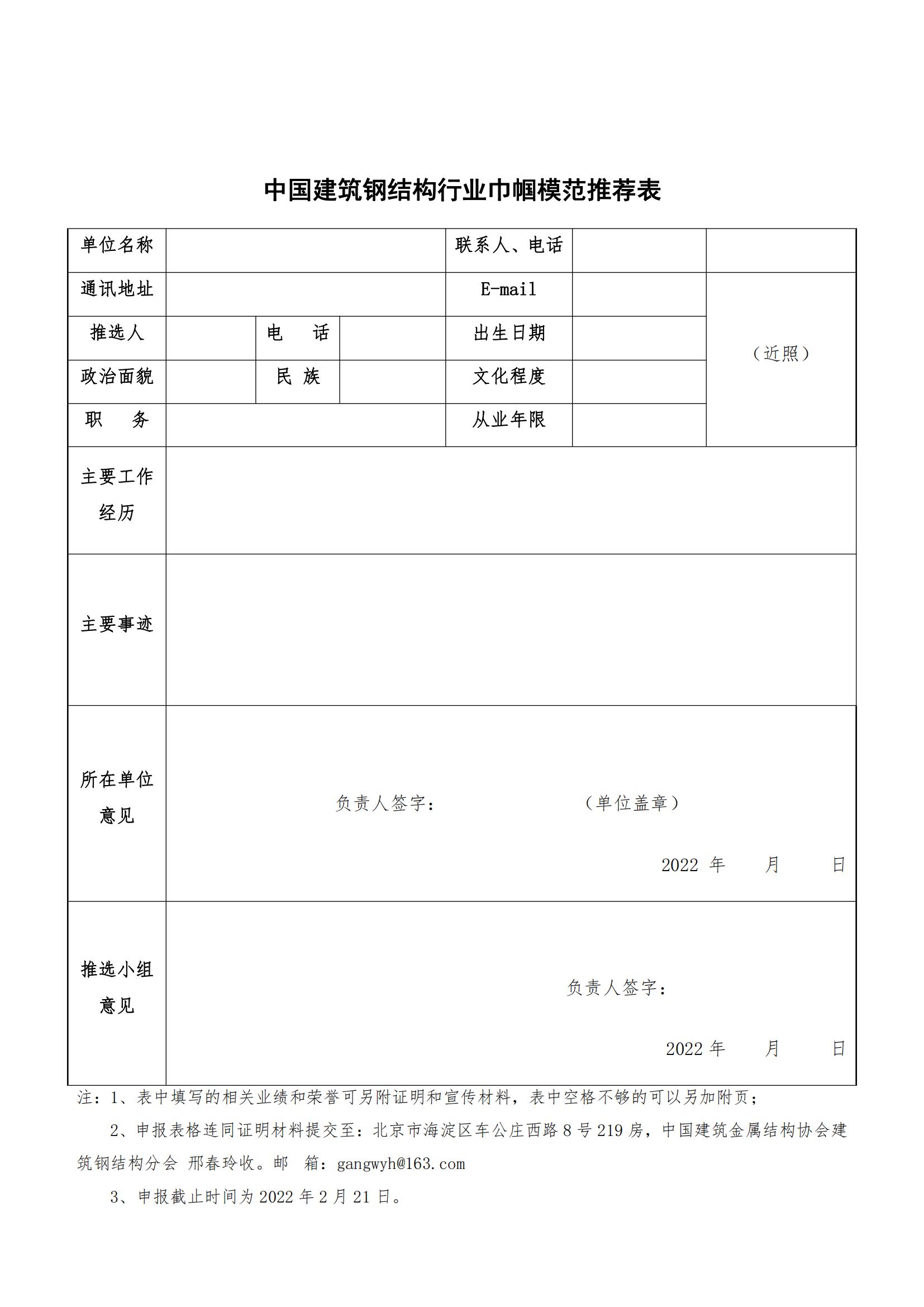 附件:中国建筑钢结构行业巾帼模范推荐表