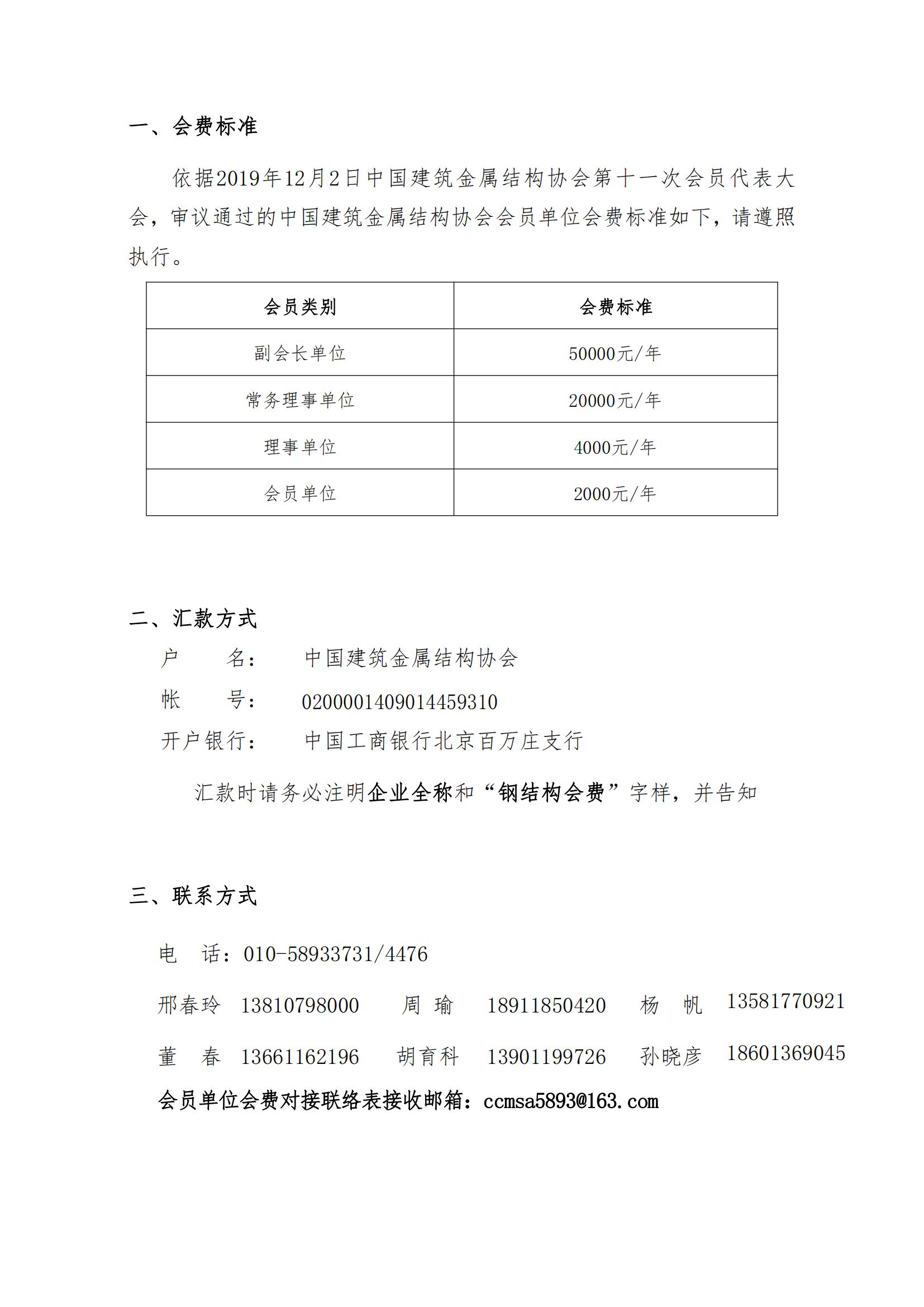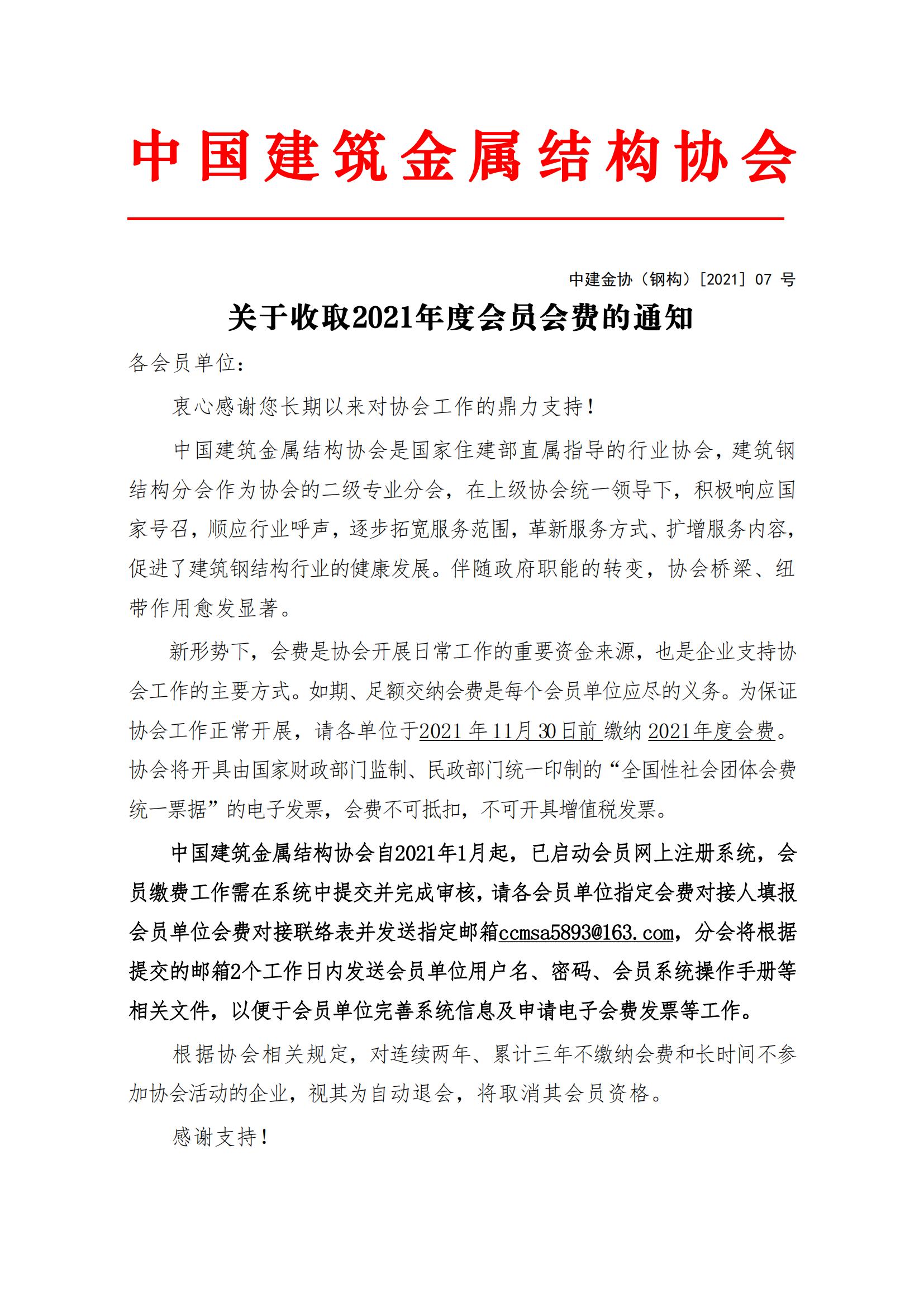 关于收取2021年度中国建筑金属结构协会会员会费的通知