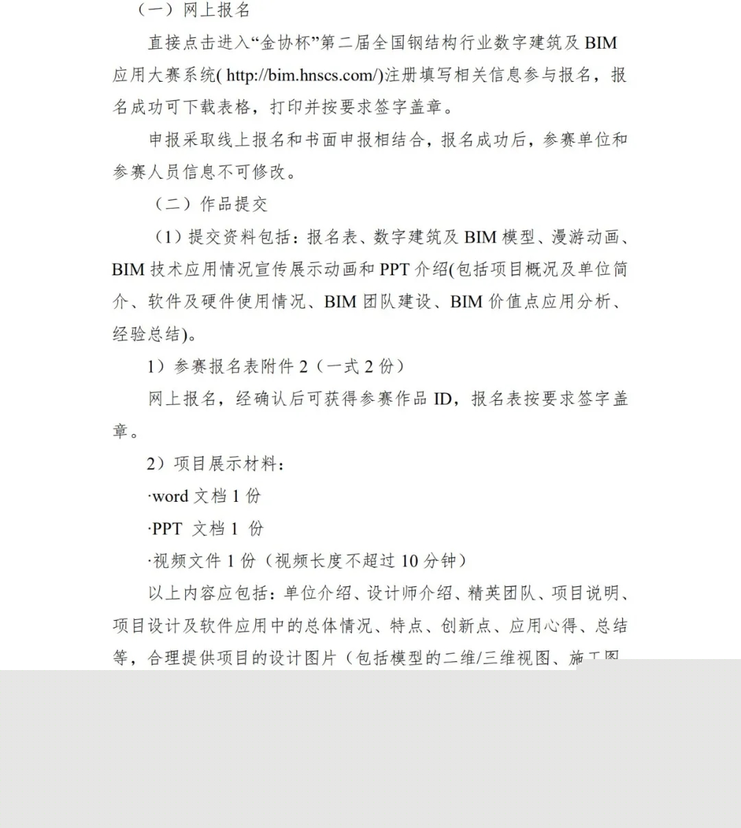 附件:作品报名提交方式及“金协杯”第二届全国钢结构行业数字建筑及BIM 应用大赛报名表