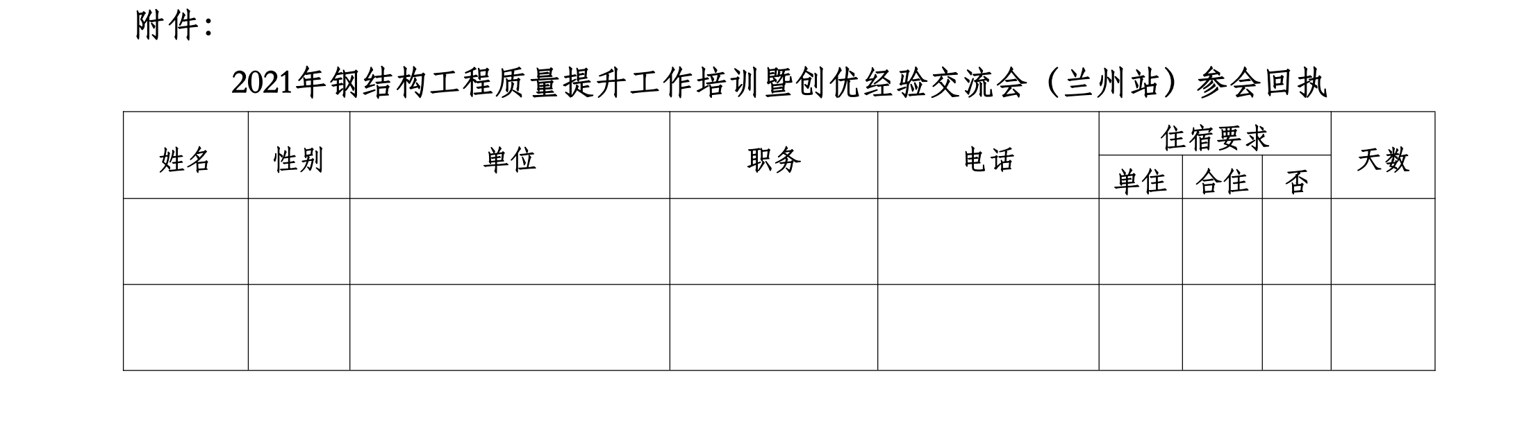 附件:2021年钢结构工程质量提升工作培训暨创优经验交流会(兰州站)参会回执