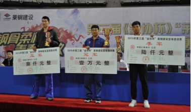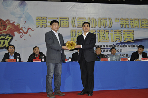 近三天的比赛,参赛的8支球队本着加深友谊、重在参与的原则,发扬勇于拼搏、团结协作的竞技精神,赛出了各自的竞技水平,展现了钢构从业人员积极向上的精神风貌。协会钢结构专家队参与最后的表演,为比赛增色。最终冠军奖杯由山东莱钢建设有限公司代表队捧回,中建钢构有限公司和浙江天鸿钢结构有限公司代表队分获亚军和季军,江苏钜宝钢结构有限公司、通州建总集团有限公司、河南省钢协天丰联队、山东中通钢构建筑股份有限公司、中建一局钢结构工程有限公司和钢结构专家代表队获得竞赛优胜奖。山东莱钢建设有限公司马传骥及中建钢构有限公司陈修远分获“最有价值运动员”、“优秀运动员”称号。中国建筑金属结构协会建筑钢结构分会胡育科副会长出席闭幕式并致辞,他肯定了此次活动充分展示了钢构篮球运动的较高水平,并希望大家把参赛的喜悦化为投身于钢构行业的巨大热情和实际行动,将篮球比赛、篮球精神进行下去。最后,分会领导及嘉宾为获奖参赛队颁发奖杯、奖牌和奖金。第三届《金协杯》“莱钢建设”篮球邀请赛于11月2日胜利闭幕。(周瑜)