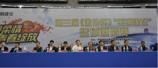 金秋送爽、耐冬飘香。为构建健康、和谐的社团文化,由中国建筑金属结构协会建筑钢结构分会主办、山东莱钢建设限公司承办的第三届《金协杯》“莱钢建设”篮球邀请赛于2015年10月31日-11月2日在美丽的青岛举行。山东莱钢建设有限公司董事长、总经理沈桂联向领导及全国各地钢结构企业积极参与本次活动表示欢迎和感谢。中国建筑金属结构协会刘哲秘书长出席开幕式并致辞,希望参赛队伍赛出水平,赛出风格,赛出钢构职工的风采,并预祝大赛圆满成功。