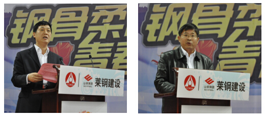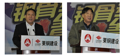 开幕式领导致辞(左:山东莱钢建设有限公司董事长、总经理沈桂联 右:中国建筑金属结构协会秘书长刘哲)