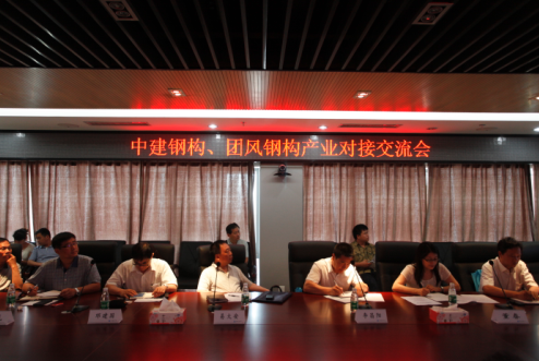 为搭建好帮扶平台,促进企业之间的协调对接,优势互补。2014年6月,分会牵头组织了中建钢构·团风钢构产业对接交流会。湖北省建筑工程管理局李昌阳处长、湖北团风县吴佑明副县长、中建钢构(华中大区)王朝阳总经理等相关领导出席会议并讲话。团风县住建局、经信局、科技局等帮扶分管领导;团风县8家钢构企业的负责人近40人出席了会议。通过此次对接,中建钢构、团风钢企双方增进了了解,达成了共识,要优势互补共同推进钢结构产业化发展。2014年9月,通过分会的具体协调,中建钢构有限公司(华中大区)与团风县人民政府共同签订战略合作协议,双方正式建立战略合作关系:共建湖北省钢结构产业发展研究院,充分发挥政企优势,共研钢结构新技术,促进湖北省钢结构产业集群协同发展;积极推进住宅钢结构示范工程建设,努力成为国家住宅钢结构产业示范基地,适时寻求项目做为示范工程推广建设;建立我国中部钢结构人才培训或输送基地;深化市场合作与互补机制。