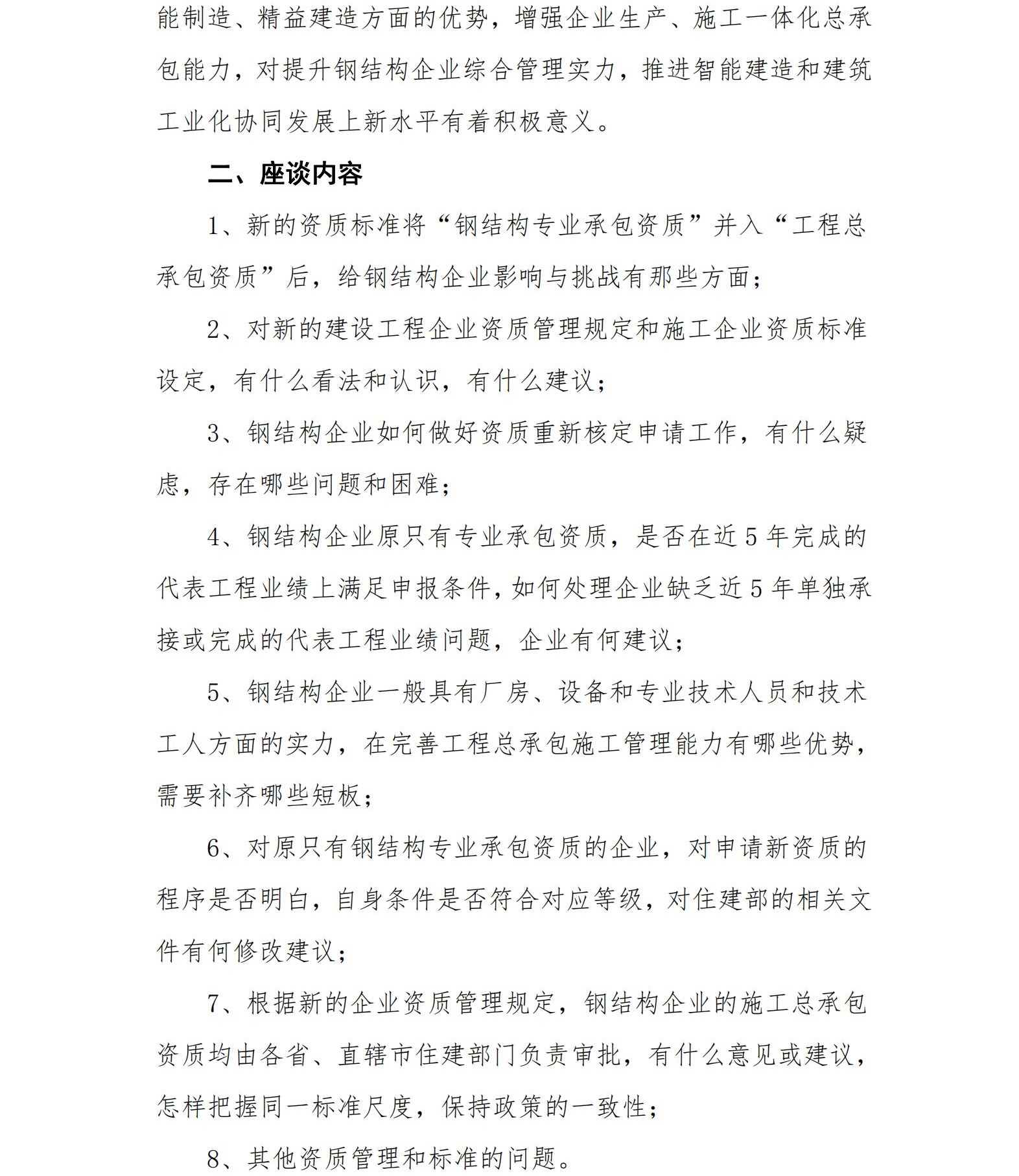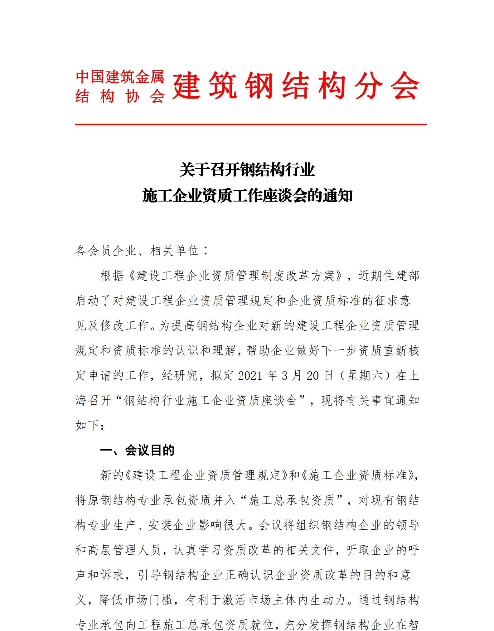 关于召开钢结构行业施工企业资质工作座谈会的通知