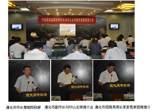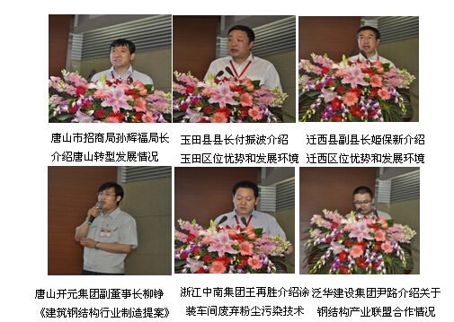 作为时下最热的国家战略“京津冀”一体化给企业带来适应新常态的便利和优势,遵化、玉田、迁西等地依托现有的基础产业的优势,积极推进京津冀一体化在本地区的落实,会上,与会专家和企业听取了在结构调整、产业转型方面发展情况,同时听取了玉田县县长付振波、迁西县副县长姫保新介绍各地的区位优势、发展环境和投资等方面优势,为培育钢结构产业的发展提供了广阔的空间。唐山遵化市还特为钢结构企业到来举办了招商推介会,遵化市市长詹晓阳、副市长刘印山、遵化市招商局局长李家君在接待参会企业专家的时候表示遵化愿意成为中国建筑金属钢结构产业的配套基地。这无疑体现了唐山地方政府在发展经济,推进地方企业结构调整,产业升级优化,落实生态文明建设的紧迫感和创新发展的意识。会议期间还听取了唐山开元集团在钢结构自动化,智能化制造方面技术和产品的介绍,听取了浙江中南集团钢构有限公司涂装车间废弃粉尘污染技术的介绍,听取了国内知名的总承包企业泛华建设集团关于钢结构产业联盟合作情况的交流内容,为钢结构企业的转型发展发挥行业引领作用。