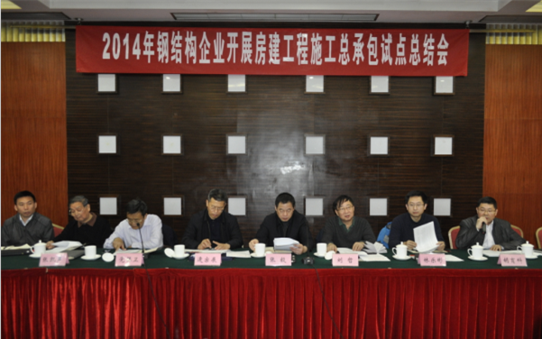 自2014年4月份住建部批准钢结构企业开展房建施工总承包资质试点工作以来,为交流试点工作经验、研讨钢结构企业在实施工程总承包管理中存在的问题,按照住建部建筑市场监管司安排,中国建筑金属结构协会于2015年3月9日上午在京组织召开了2014年钢结构企业开展房屋建筑工程施工总承包试点总结会。试点企业的领导和代表、住建部相关部门领导和中国建筑金属结构协会、建筑钢结构分会的领导参加了会议。会上,总承包资质试点的钢结构企业就一年来的试点工作情况进行了汇报。