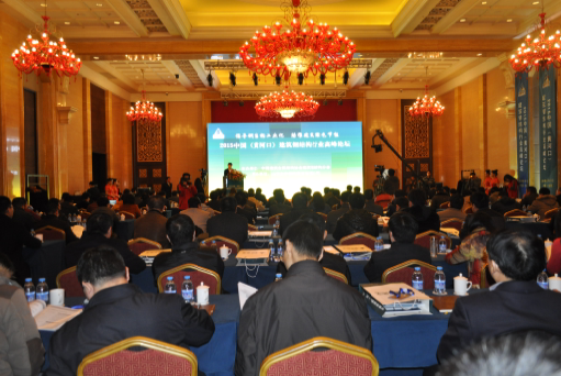 2015年1月17日,由中国建筑金属结构协会建筑钢结构分会(以下简称:建筑钢结构分会)主办,山东金宇钢结构股份有限公司承办的中国(黄河口)建筑钢结构高峰论坛在山东东营蓝海御华大饭店隆重举行。本次高峰论坛的主题是“倡导钢结构工业化 助推建筑绿色节能”,建筑钢结构分会领导携协会三名专家莅临论坛开讲,分会领导、专家主要围绕钢结构工业化议题分别从宏观形势和政策环境、钢结构住宅技术和设计应用、钢结构住宅应用及模块化建筑生产施工、钢结构建筑信息化技术应用等方面进行研讨。来自东营市住建委;东营各区、县住建局领导和就近钢构、建筑企业近百余人参加了会议,共同探讨破解行业发展难题的途径,促进产业链企业间的合作联盟,寻找钢结构行业发展的机会,共同推进山东乃至全国钢结构行业健康持续的发展。