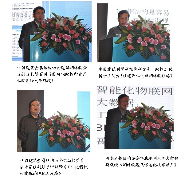 会上,建筑钢结构分会胡育科副会长解读了国内钢结构产业政策和发展环境,分析各地区在推进钢结构工业化所做的努力和支持,呼吁地方政府给予政策扶持,助推建筑工业化的发展。协会钢结构专家委员会主任、中国建筑科学研究院研究员王明贵博士从钢结构住宅的优势、特点、难点和关键问题讲解,他说,工业化发展是钢结构发展一定阶段的必然要求,充分表明了钢结构住宅在建筑工业化转型升级中是大有作为的。协会专家、中国建筑标准设计研究院教授级高工张跃峰介绍了一种新型工业化模块化建筑的现状与发展情况,让大家耳目一新。协会专家、华北水利水电学院魏群教授结合BIM(建筑信息模型),向与会人员普及了钢结构建筑信息化技术,希望企业能借助现代信息手段,服务企业的技术创新和技术进步,四位专家的讲解让参会人员受益匪浅,加深了对建筑工业化的认识,也更加坚定了对这钢结构行业美好前景的信心。