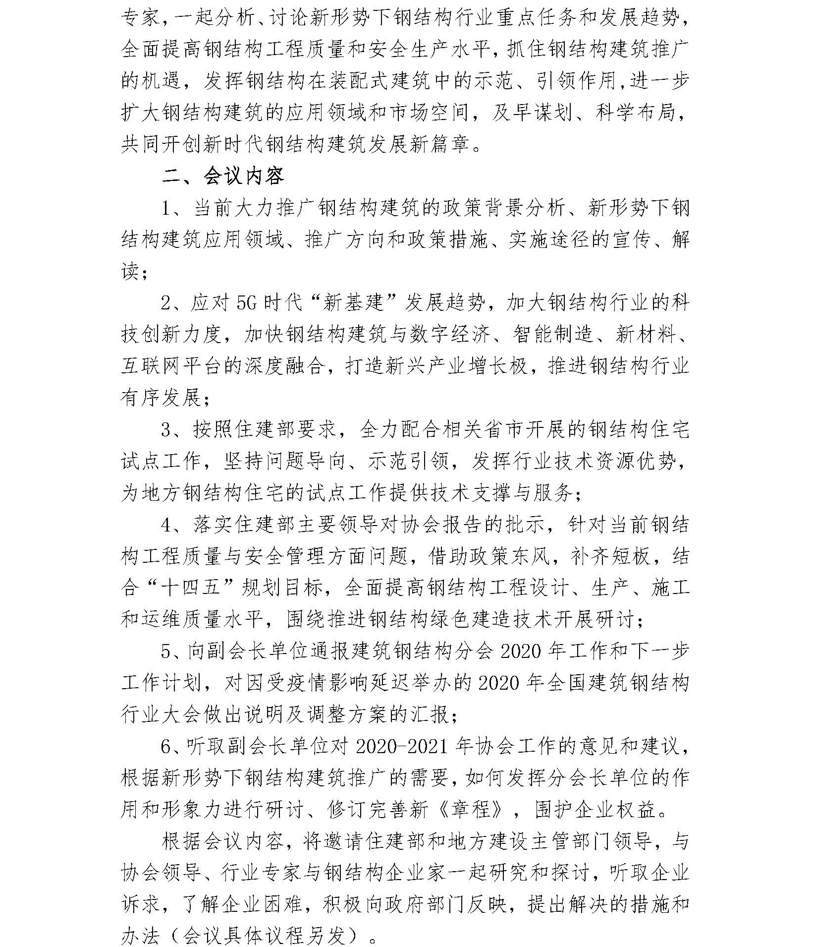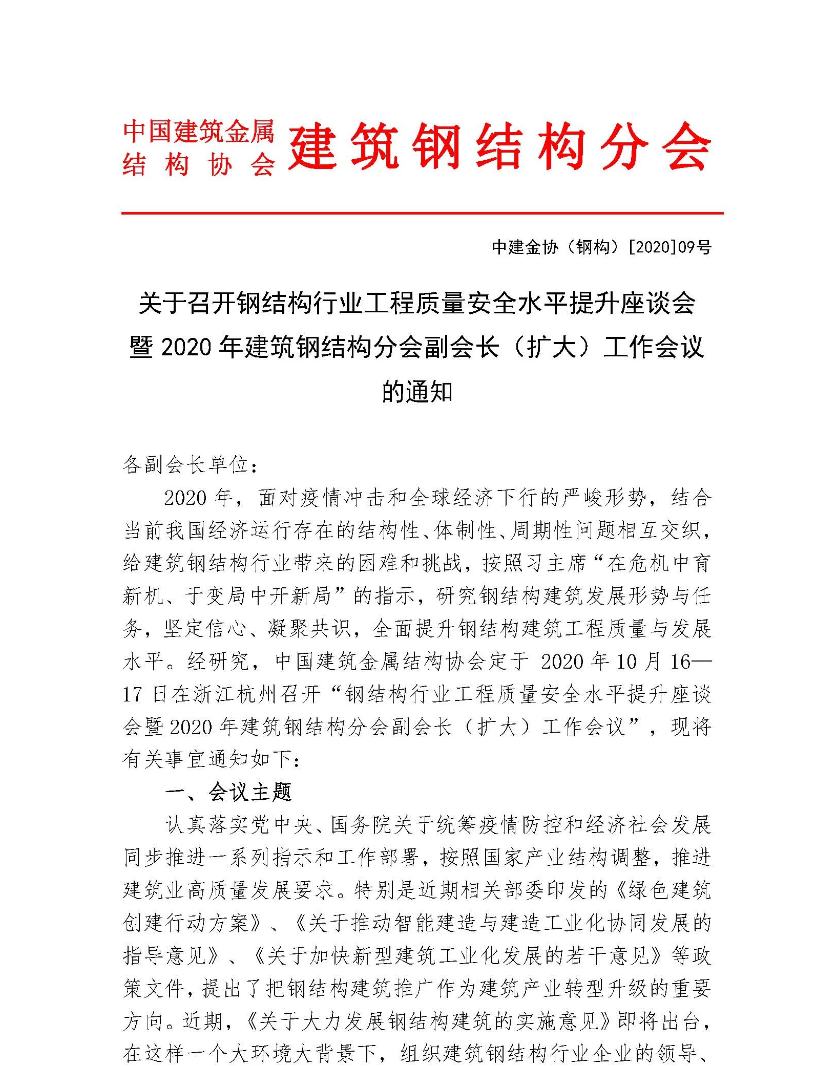 关于召开钢结构行业工程质量安全水平提升座谈会暨2020年建筑钢结构分会副会长(扩大)