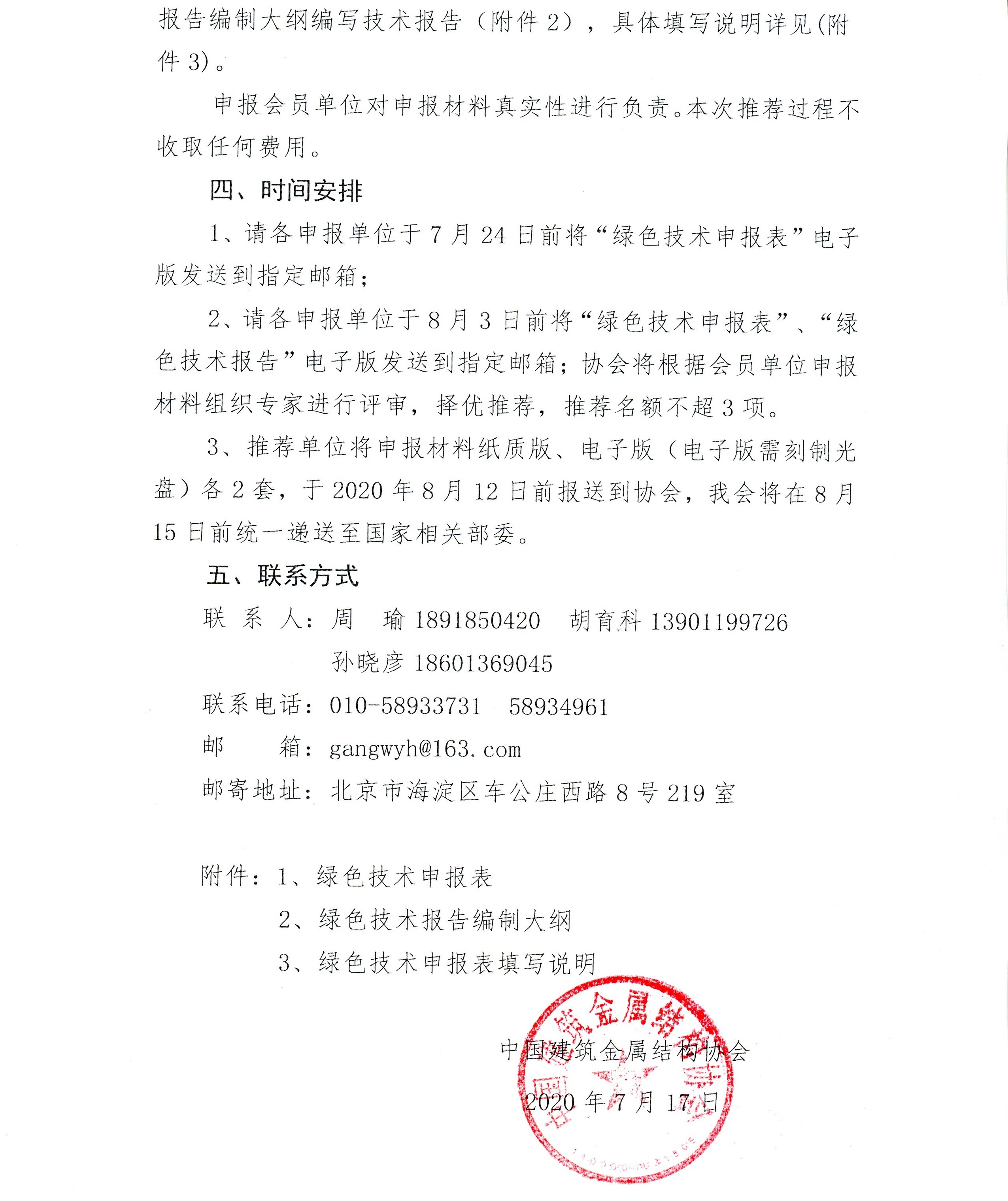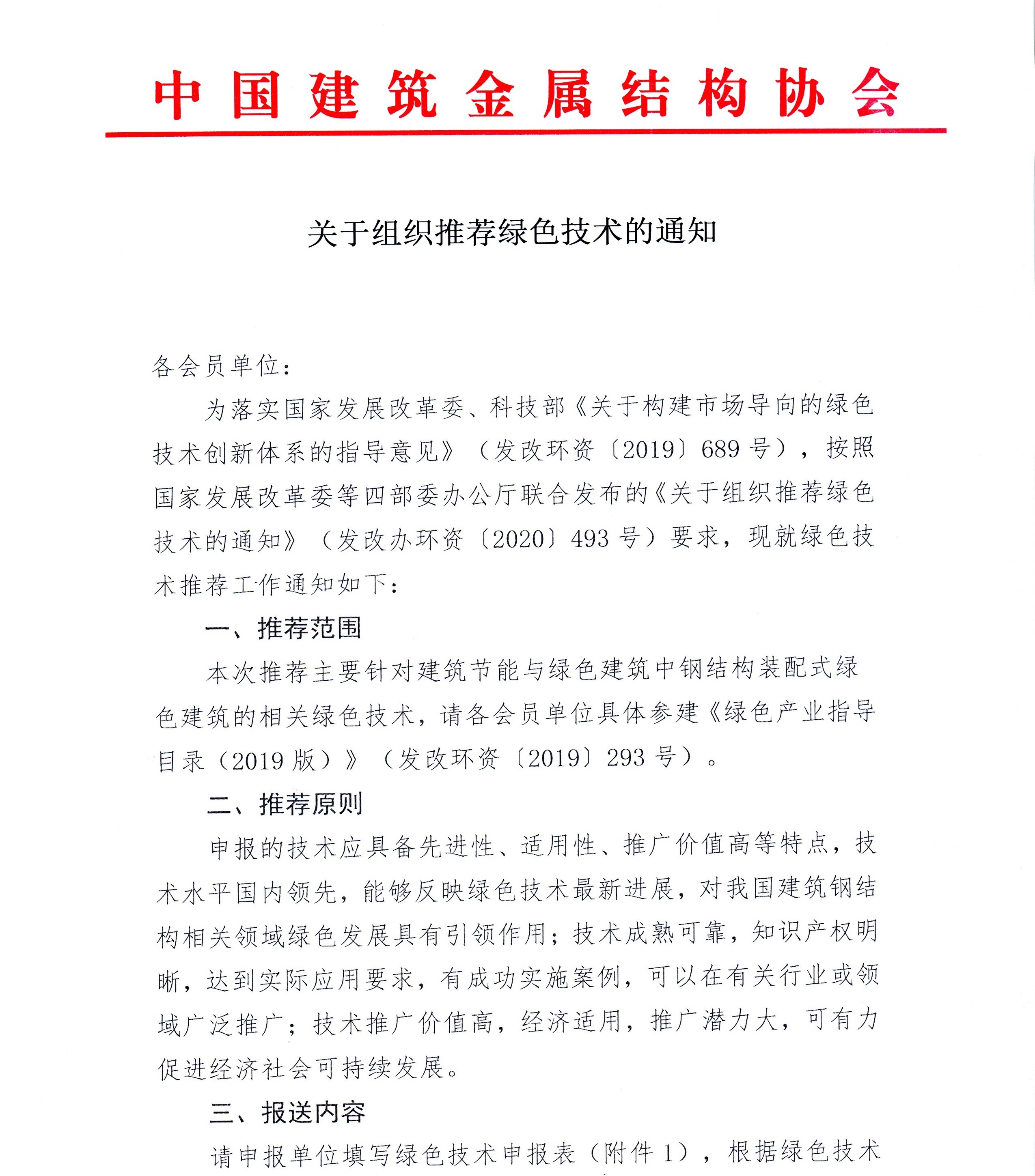 中国建筑金属结构协会关于组织推荐绿色技术的通知