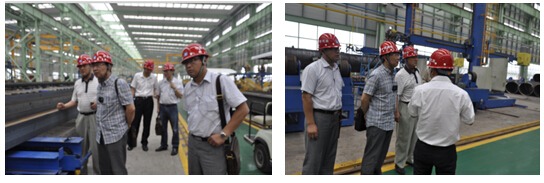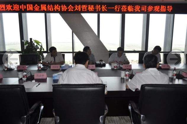 2014年7月29日,中国建筑金属结构协会秘书长刘哲、建筑钢结构分会会长党保卫、副会长邓建国、刘民等一行五人到中建钢构北方大区天津钢结构制作厂参观考察。中建钢构北方大区党委副书记温军,北方大区常务副总经理、天津厂厂长毛良涛及副厂长吕志珍等公司骨干参加座谈。座谈会上,毛良涛厂长首先向考察参观领导全面汇报公司的情况,同时针对今年开展绿色建筑方面工作,技术部的负责人罗龙也汇报了公司目前进展情况。听过汇报后,对生产车间进行了实地考察。