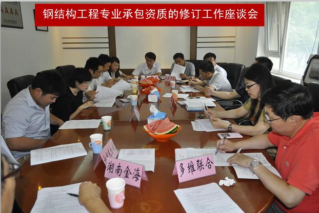 为配合做好钢结构工程专业承包资质标准的修订工作,应住房和城乡建设部要求,2014年6月25日,中国建筑金属结构协会建筑钢结构分会在京组织部分钢结构企业对资质标准的修订提出意见。部建筑市场监管司林乐彬副处长,建筑钢结构分会会长党保卫,副会长董春、胡育科等出席会议并逐条听取企业建议。与会人员针对《钢结构工程专业承包资质标准》修订稿的等级分级原则、等级考核指标设置、等级工程承包范围发表了各自的意见和看法。