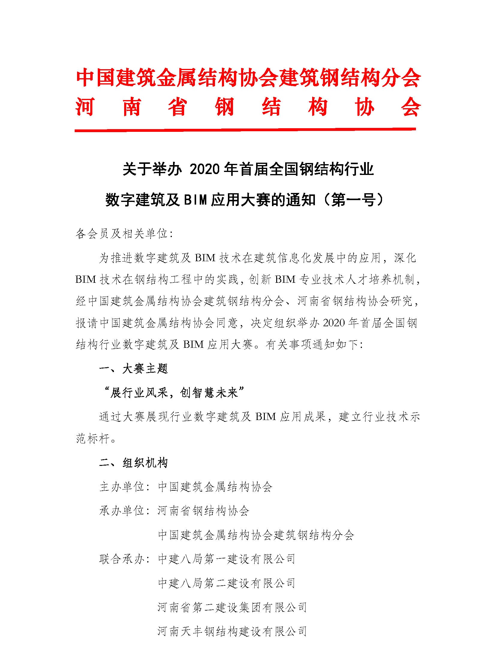关于举办 2020年首届全国钢结构行业数字建筑及BIM应用大赛的通知(第一号)