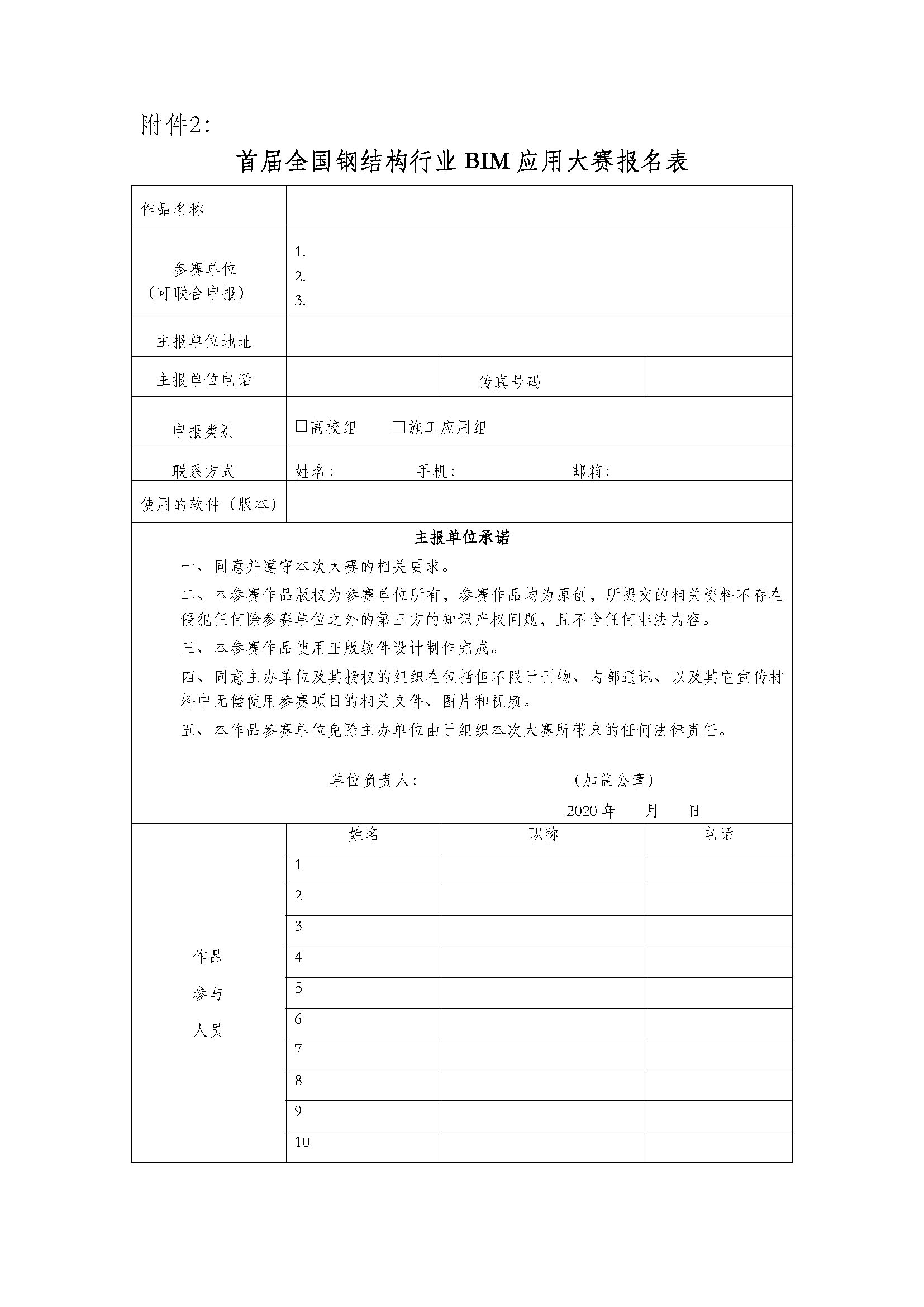 附件:首届全国钢结构行业BIM应用大赛报名表