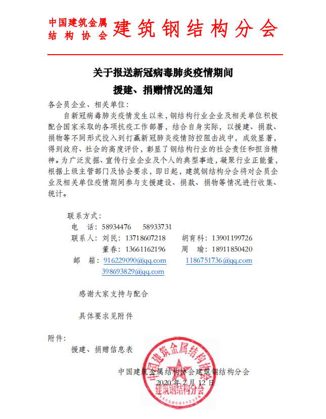 关于报送新冠病毒肺炎疫情期间援建、捐赠情况的通知