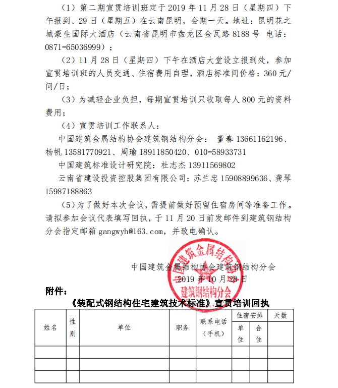 附件:《装配式钢结构住宅建筑技术标准》宣贯培训回执