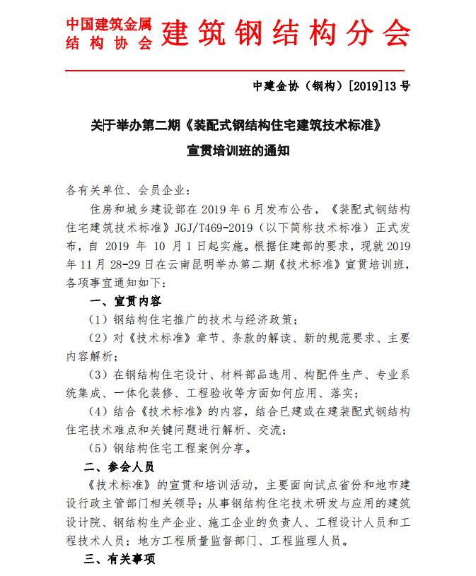 关于开展第二期《装配式钢结构住宅建筑技术标准》宣贯培训工作的通知