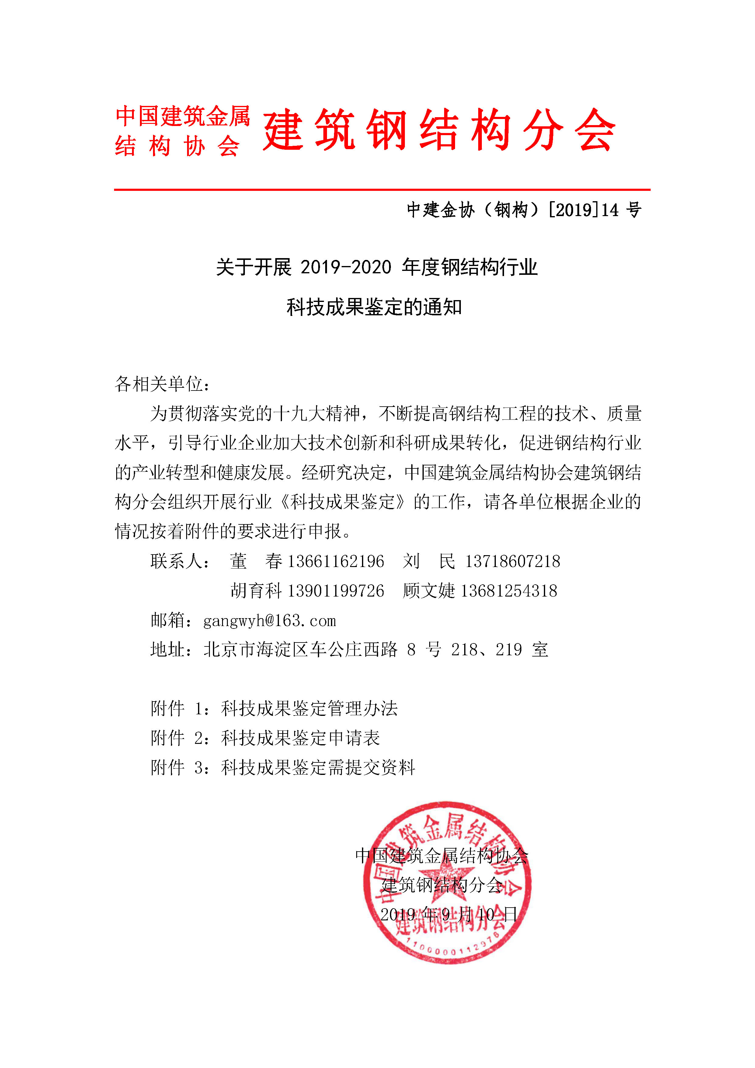 关于开展2019-2020年度钢结构行业科技成果鉴定的通知