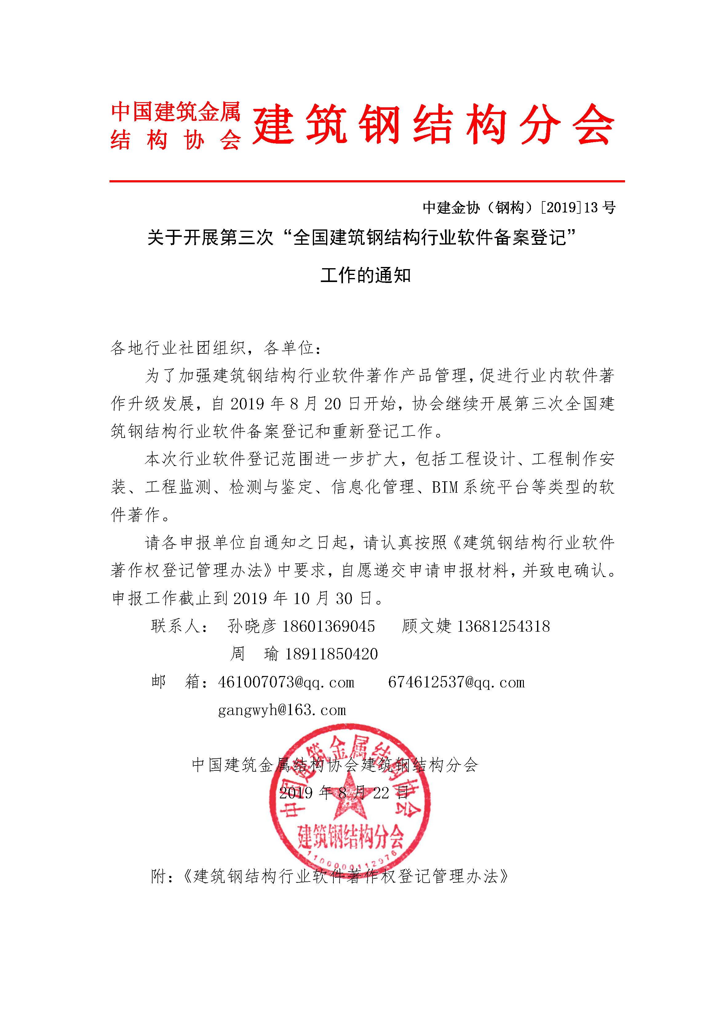 中国金属结构协会建筑钢结构软件登记办法
