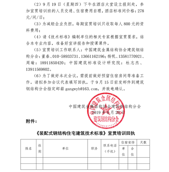 附件:关于开展《装配式钢结构住宅建筑技术标准》宣贯培训工作的通知回执