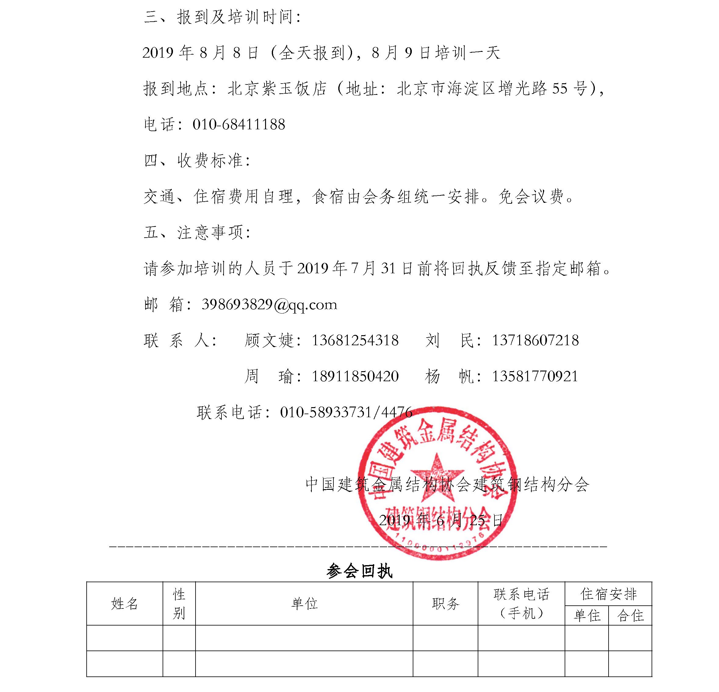 附件:2019年度钢结构工程质量创优研讨会参会回执